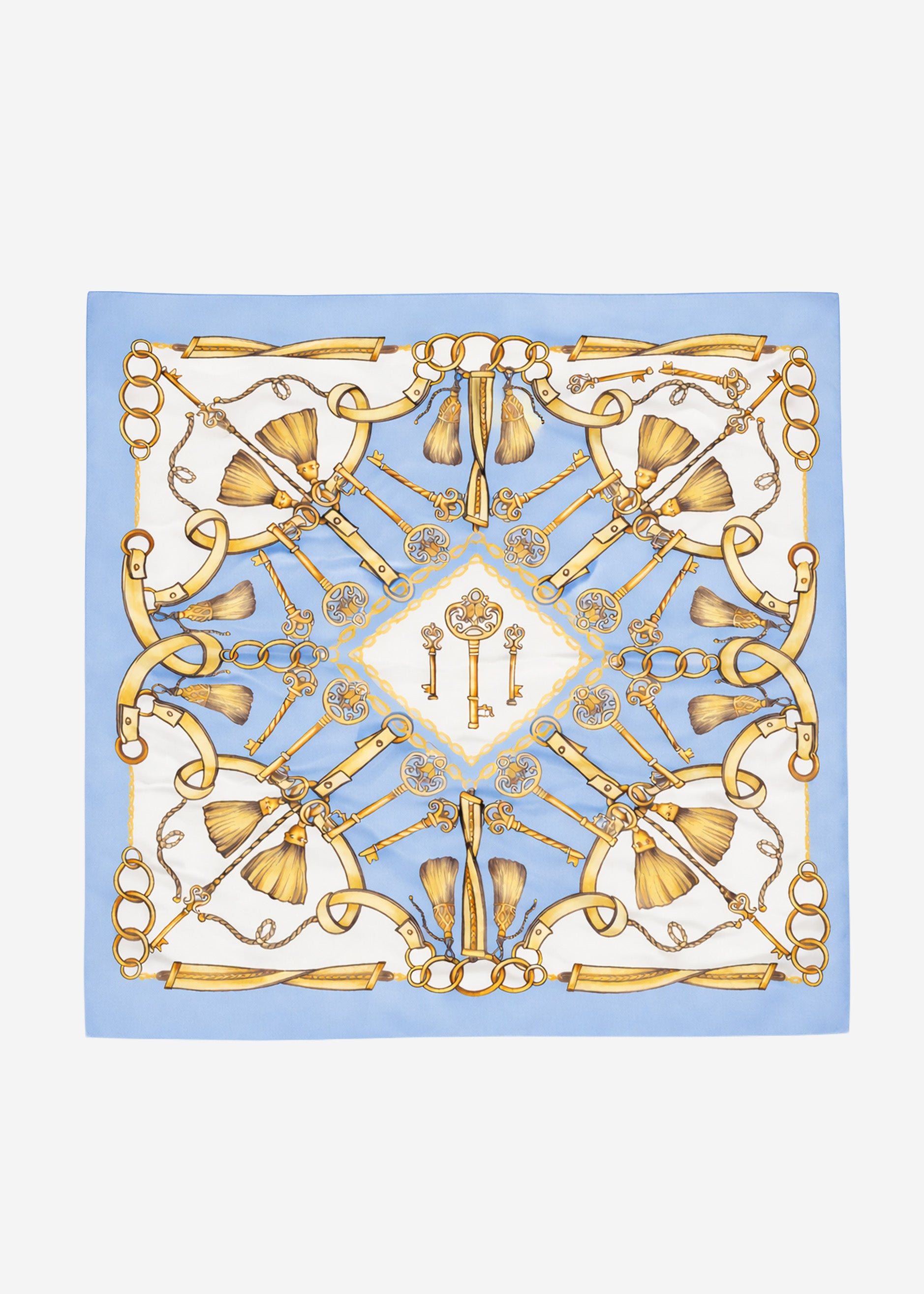 Feines Halstuch in Blau mit Print und Seidenanteil. Der glatte, leicht glänzende Stoff sorgt für eine hochwertige, elegante Optik, während der detailreiche Print dem Design eine zeitlose Note verleiht. Ein edles Accessoire mit angenehm weichem Griff.