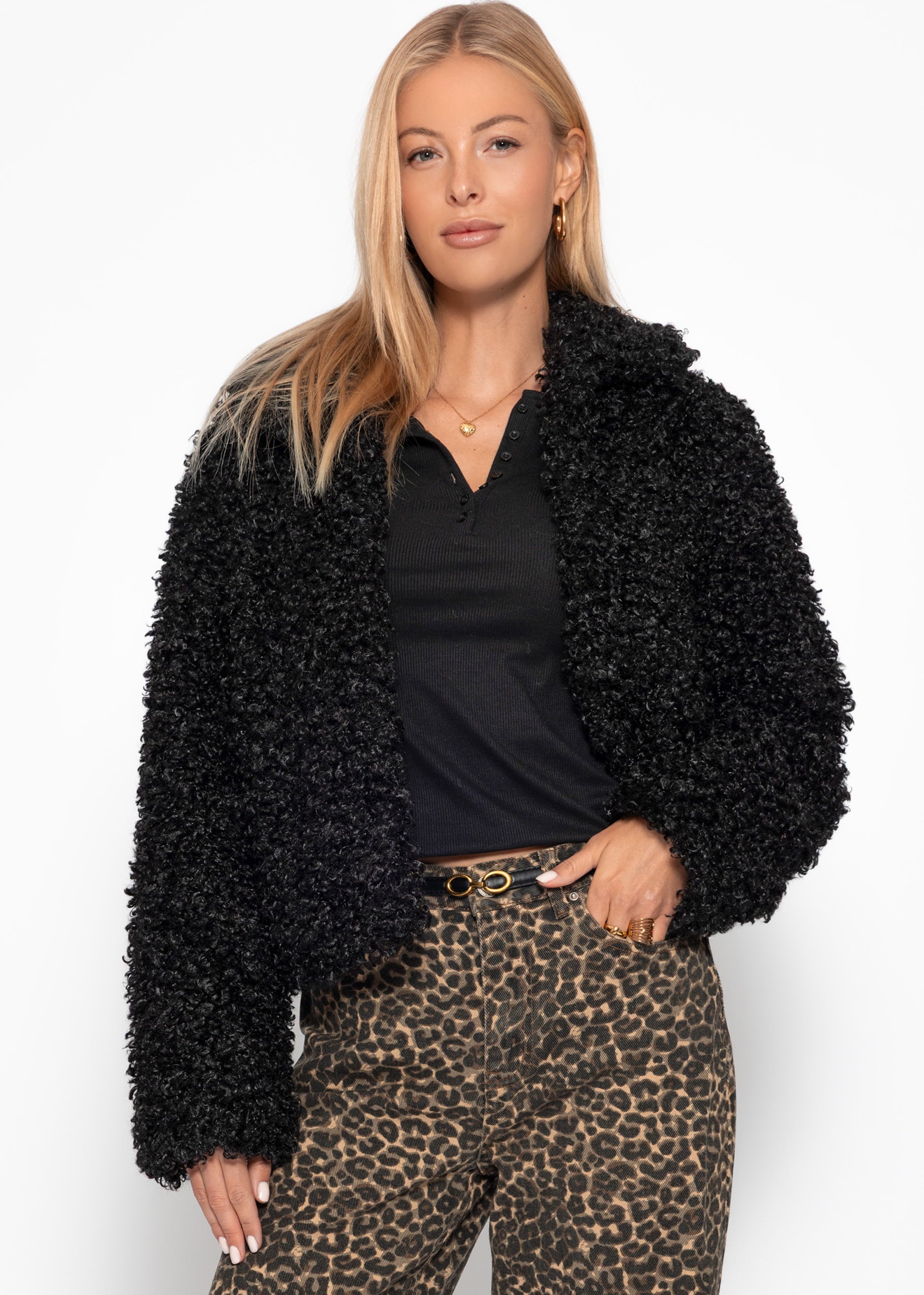 Die Jacke aus kuscheligem Teddyfell verbindet angesagten Streetstyle mit gemütlichem Tragekomfort. Das Modell besitzt eine lockere Passform, die zusammen mit den kurzen Schnitt für einen moderen Look sorgt. Das weiche Material fühlt sich angenehm auf der Haut an und hält dich an kühleren Tagen wohlig warm. Dank ihrer Vielseitigkeit lässt sich die Jacke sowohl lässig zu Jeans und Sneakern als auch schick über einem Kleid kombinieren.