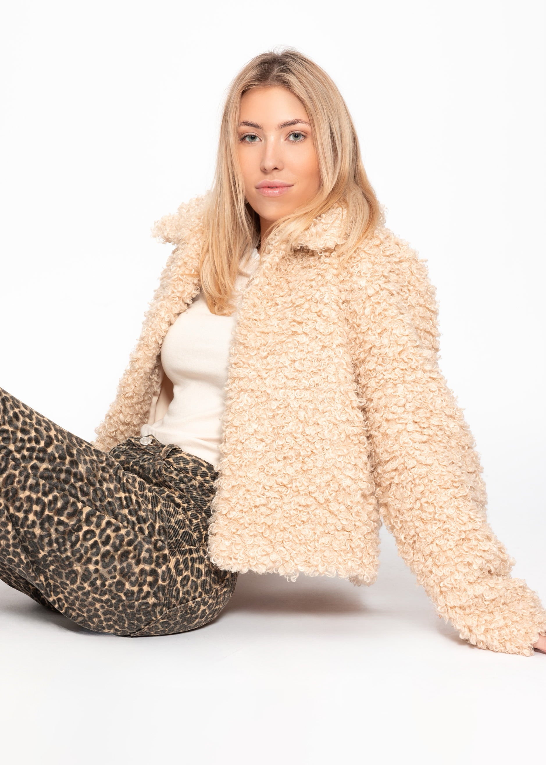 Diese kuschelige Teddyjacke ist ein absolutes Highlight für die kühle Jahreszeit. Das weiche, flauschige Material sorgt für ein angenehmes Tragegefühl und verleiht dem Look eine moderne, lässige Ausstrahlung. Dank des lockeren Schnitts und der leicht verkürzten Form lässt sich die Jacke vielseitig kombinieren – ob zu High-Waist-Jeans und Sneakern für einen entspannten Look oder als stilvoller Kontrast zu einem Kleid. Mit ihrem zeitlosen Design wird sie schnell zum Lieblingsstück im Alltag und bietet gleichzeitig Komfort und Wärme für Herbst und Winter.