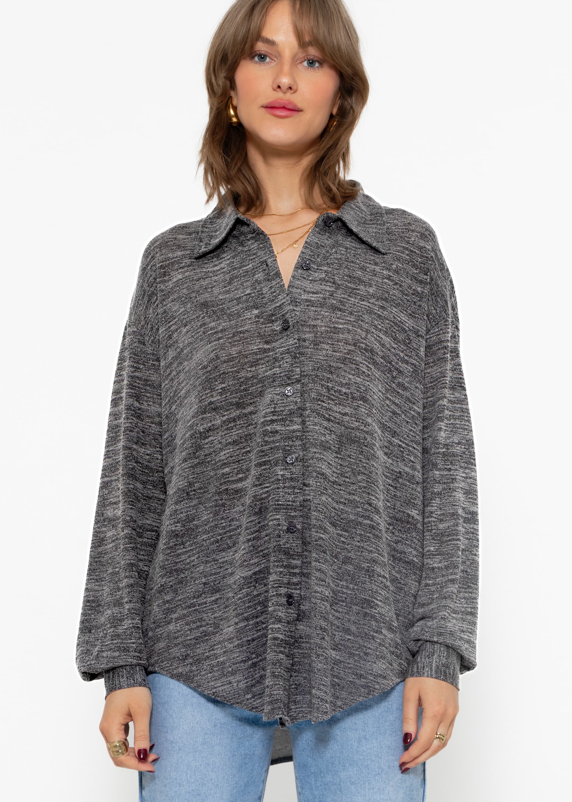 Jersey Bluse - dunkelgrau melange