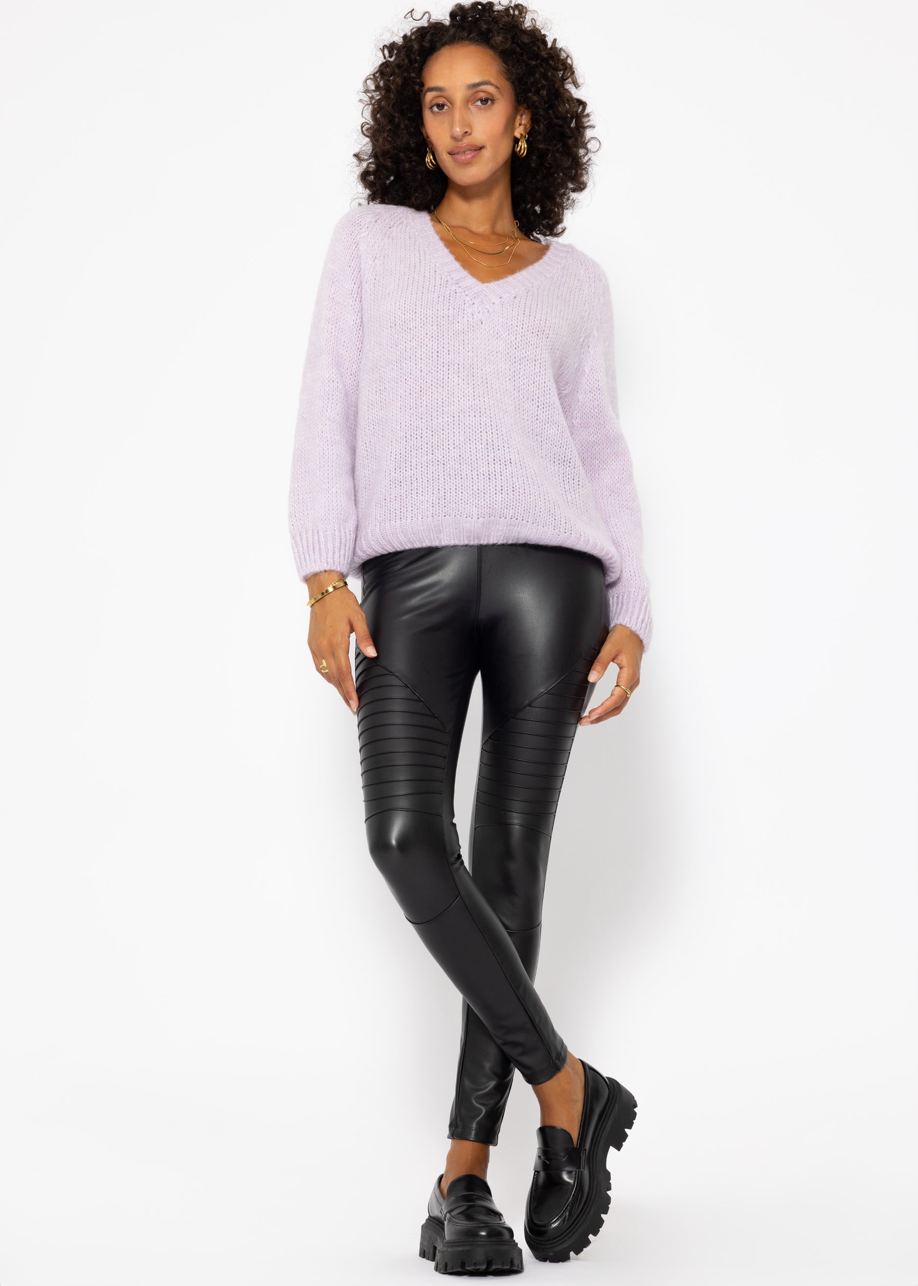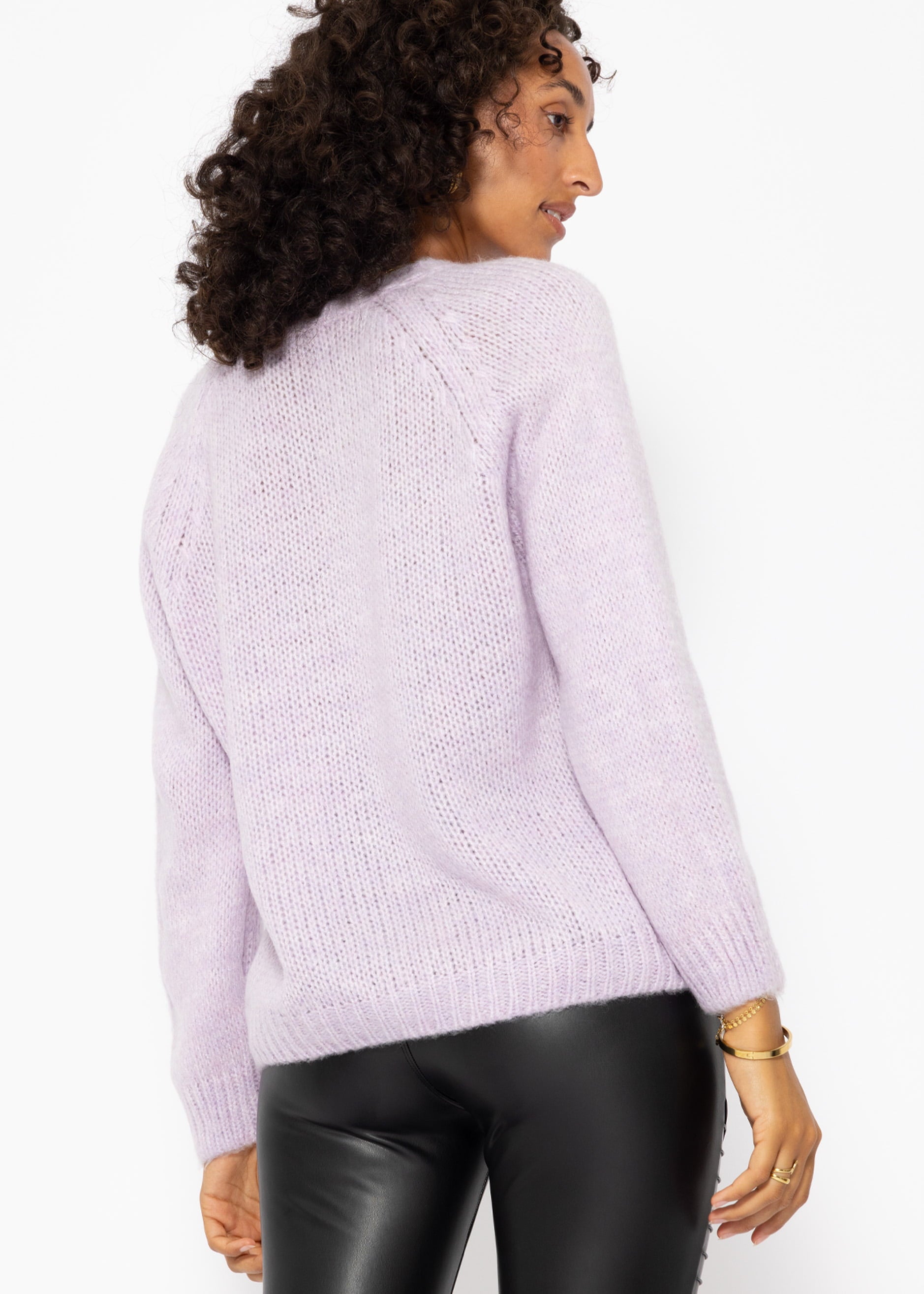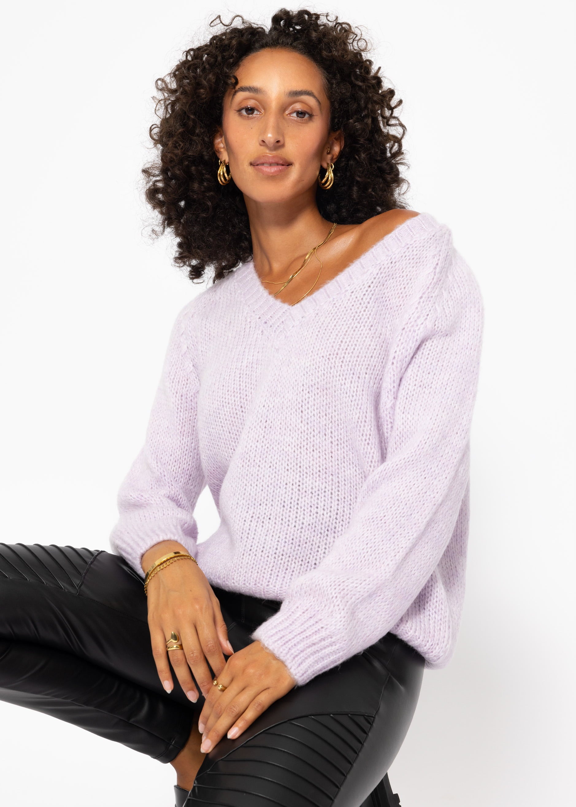 Klassischer Strickpullover mit V-Ausschnitt und Blende in Flieder