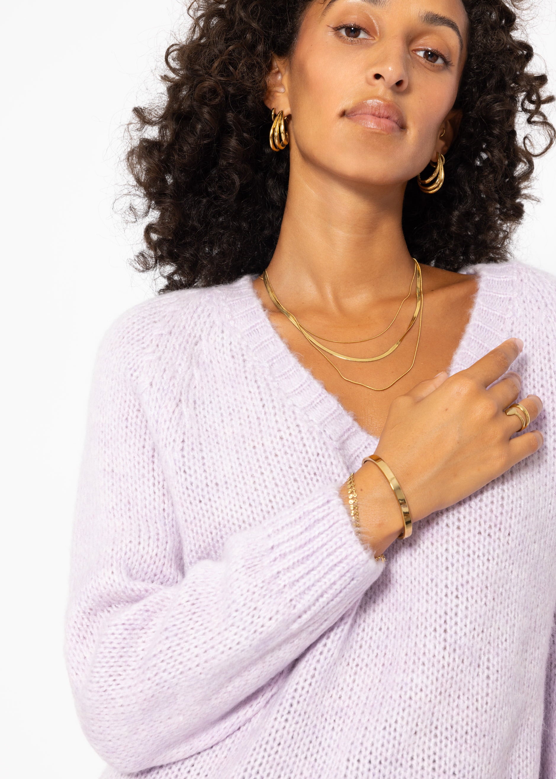 Klassischer Strickpullover mit V-Ausschnitt und Blende - flieder