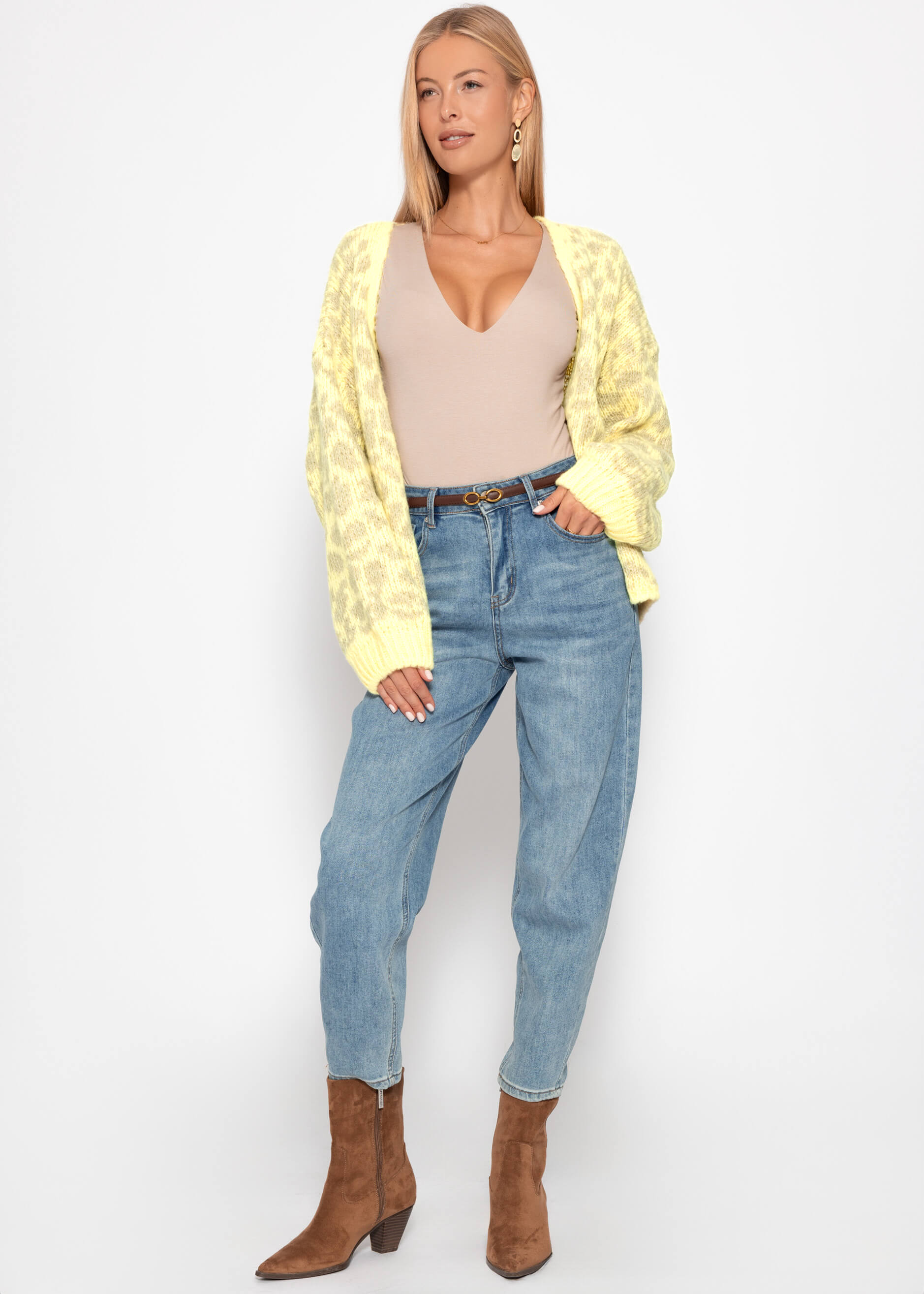 Kurzer Cardigan mit Leo-Print - gelb-beige