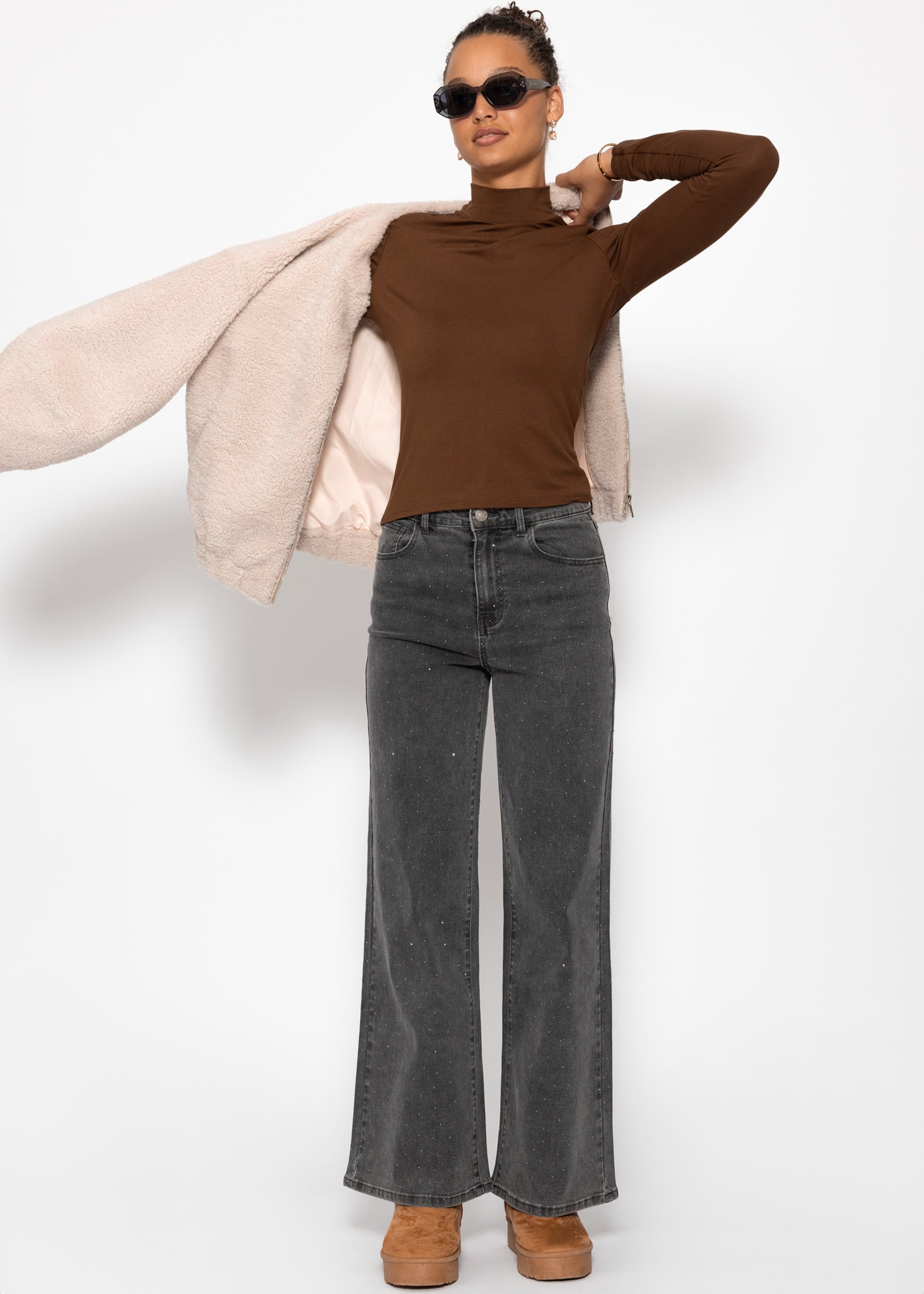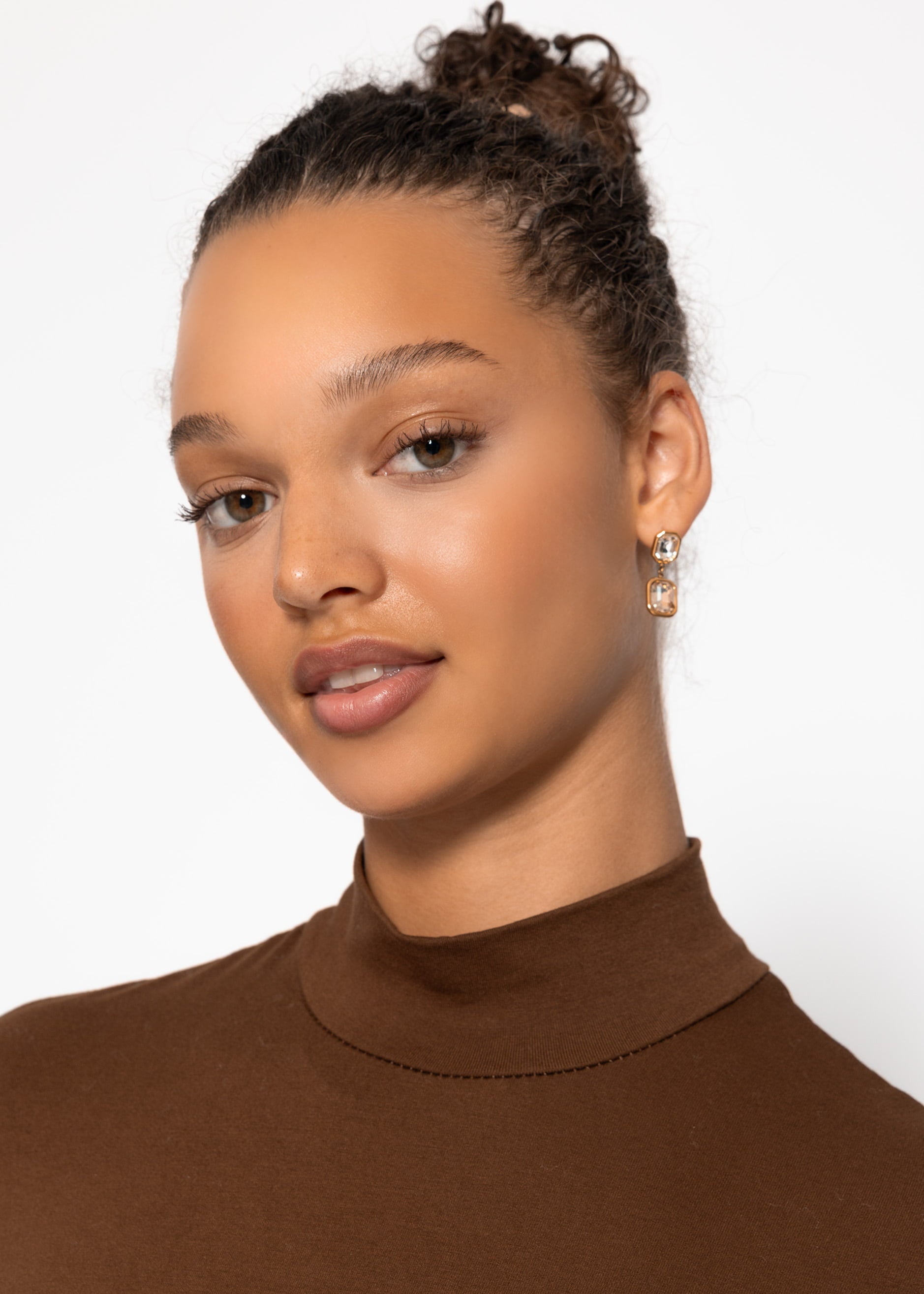 Dieses Langarm-Rollkragen-Shirt in Braun ist ein Basic-Piece. Es besitzt eine anliegende Passform und lange Ärmel.
