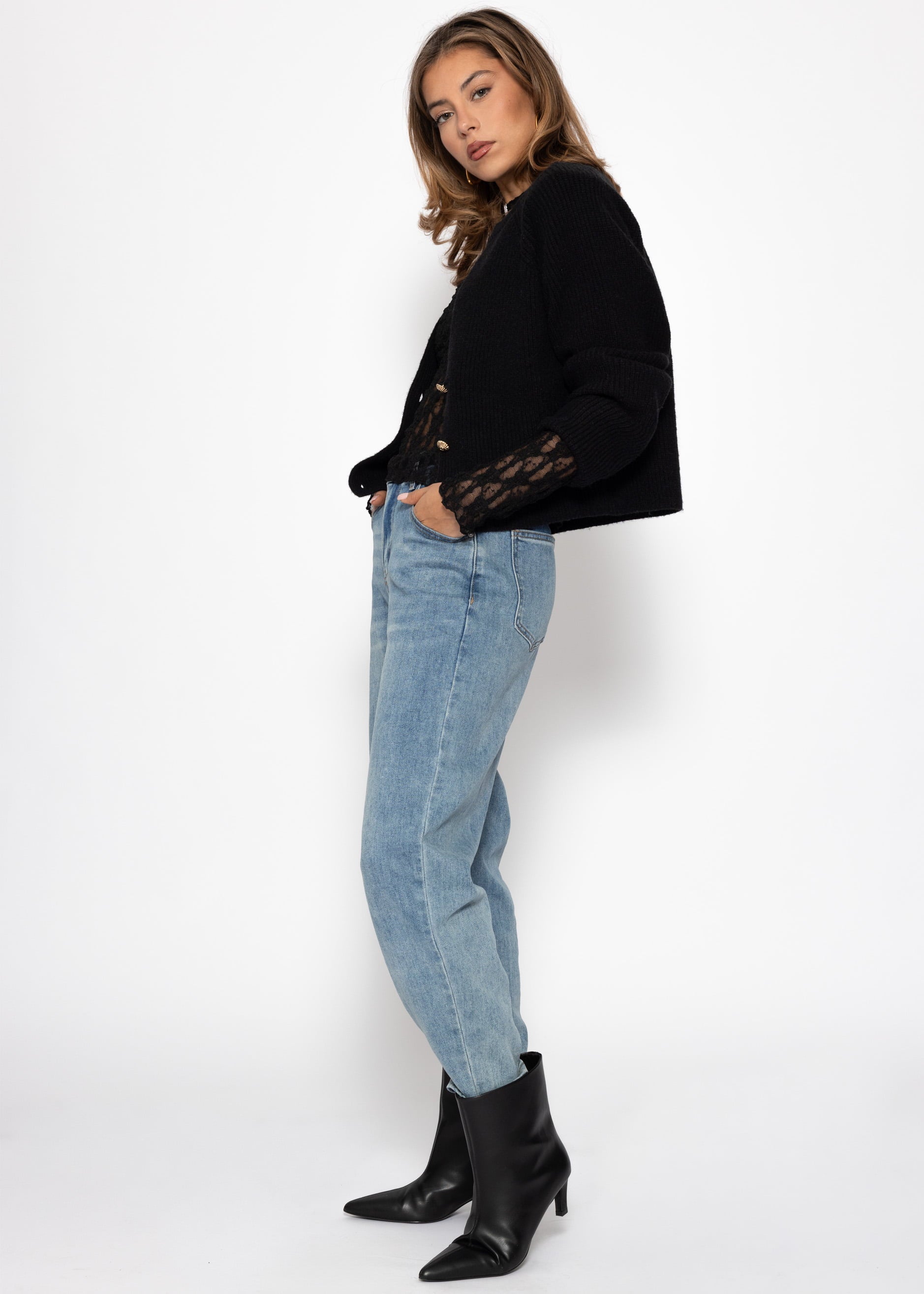 Langarmshirt aus transparenter Spitze mit floralem Muster. Figurbetonter Schnitt mit Rundhalsausschnitt. Feminine Optik durch feine Spitze und zarte Transparenz.