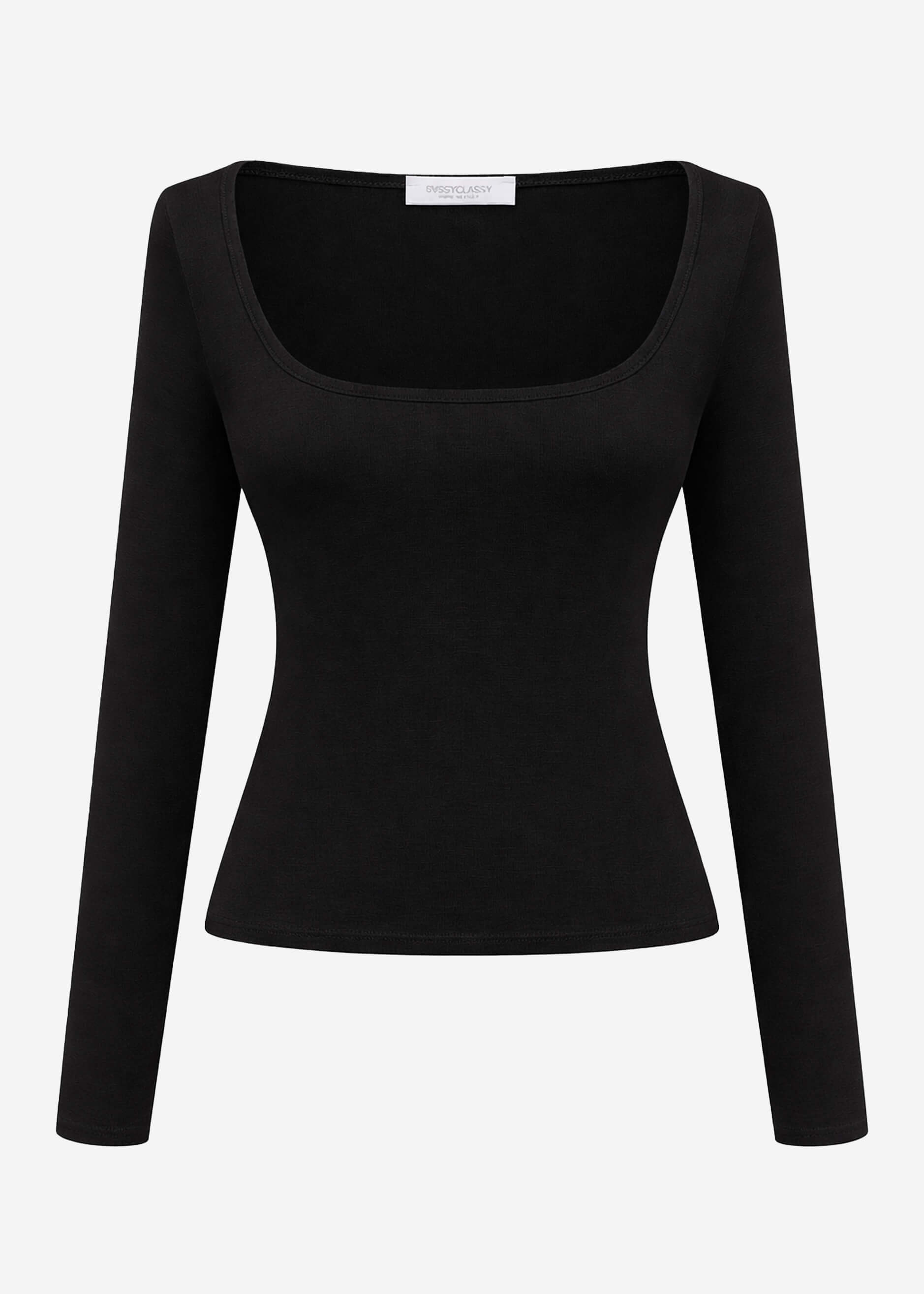 Langarmshirt mit Ausschnitt - schwarz