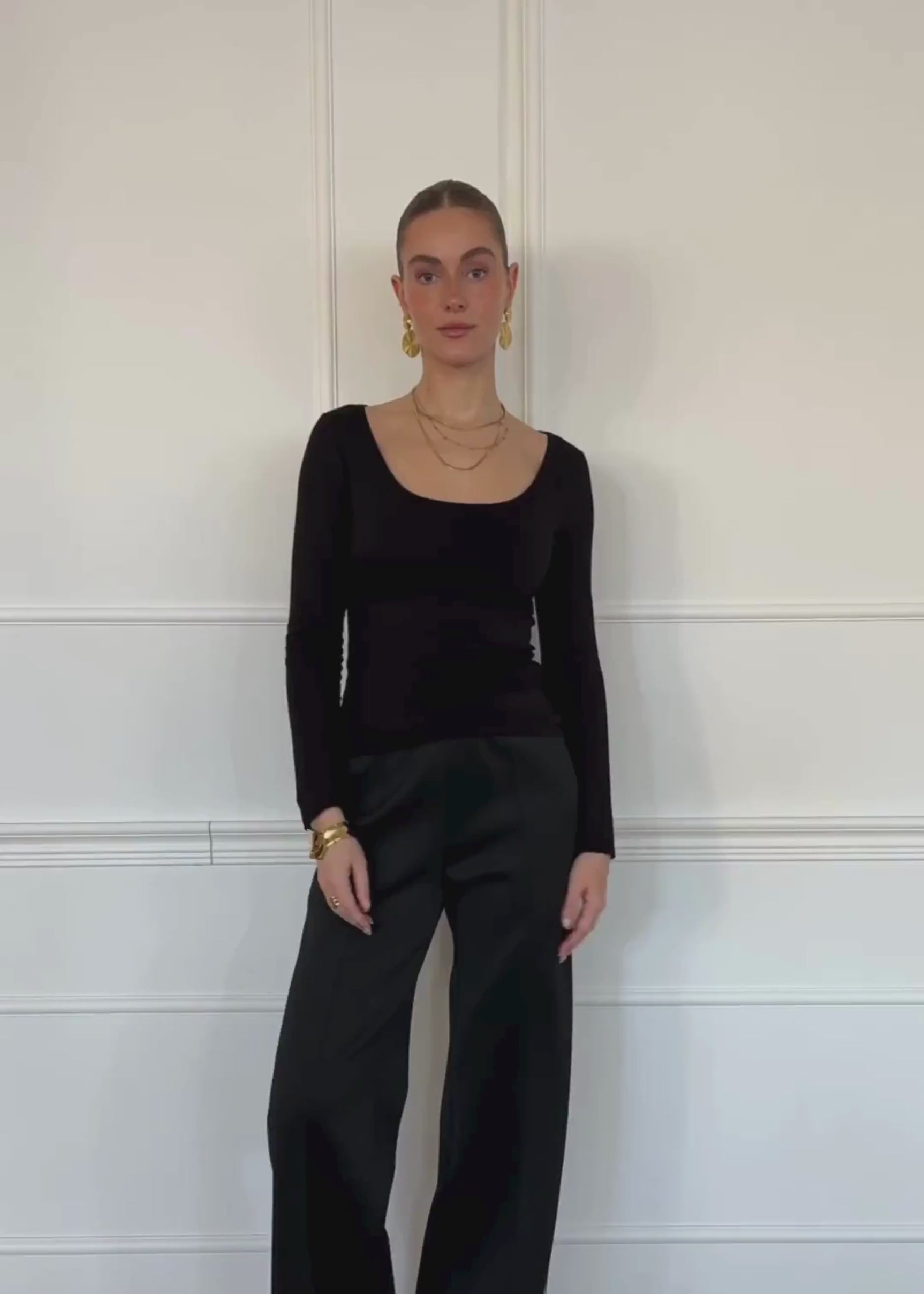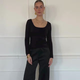 Dieses weiche Langarmshirt in Schwarz ist ein zeitloses Basic. Es bietet Komfort durch seine Passform und den weiten Rundhalsausschnitt.