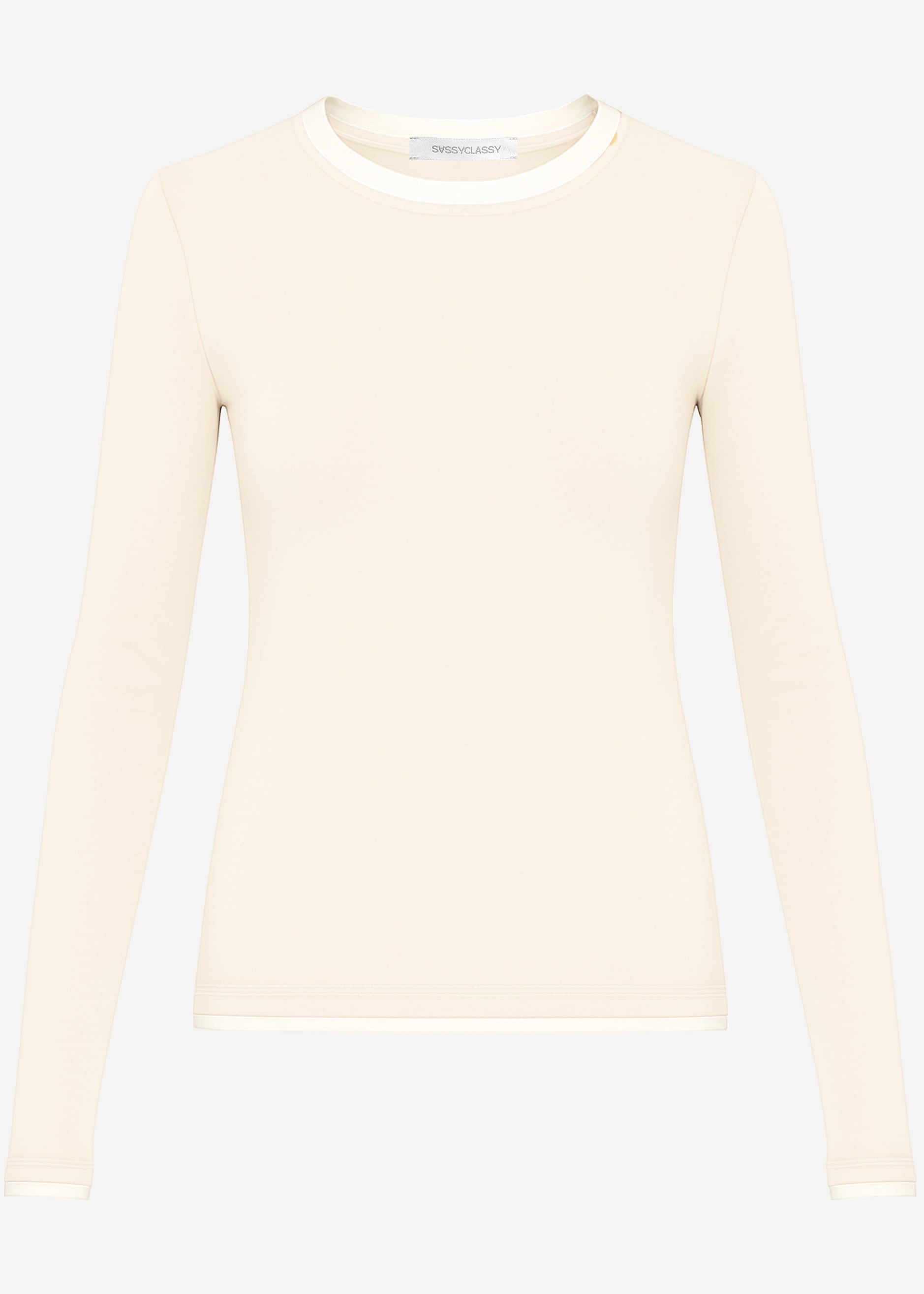 Dieses Langarmshirt in Beige bietet ein cleanes Design mit dezenten Kontrasteinsätzen. Der weiche Jersey-Stoff sorgt für hohen Tragekomfort und eine angenehme Passform, abgerundet durch einen klassischen Rundhalsausschnitt.