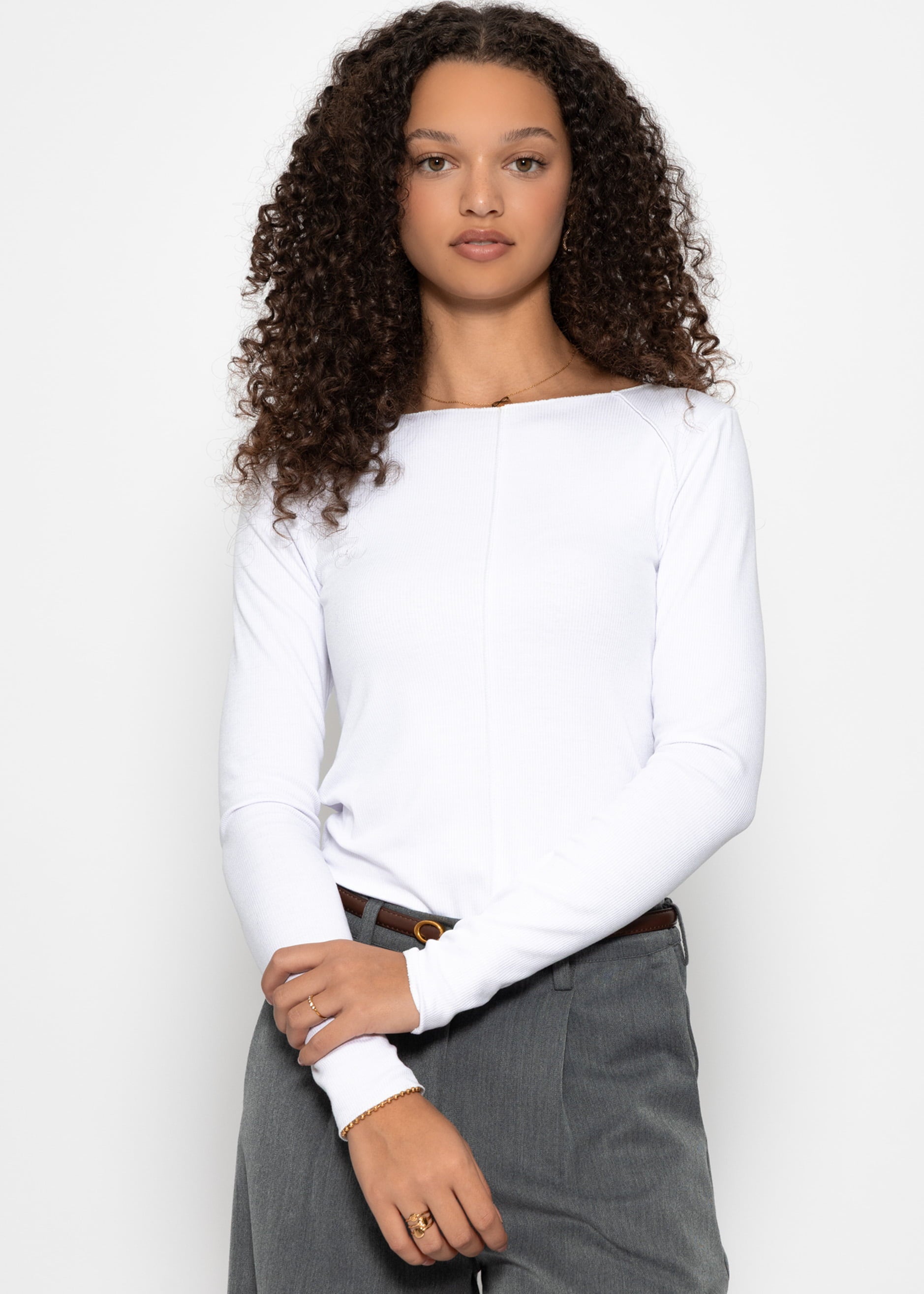 Langarmshirt mit Ziernähten - weiß
