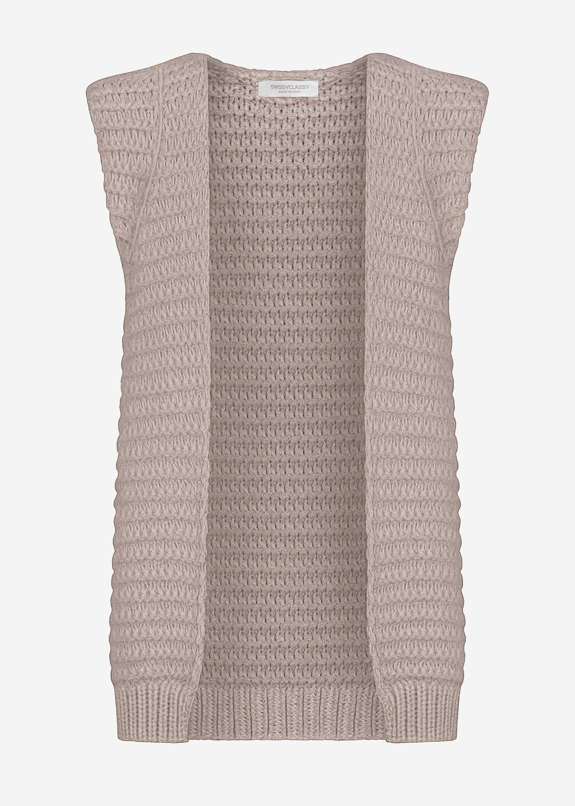 Lange ärmellose Strickweste mit strukturierten Schultern - taupe