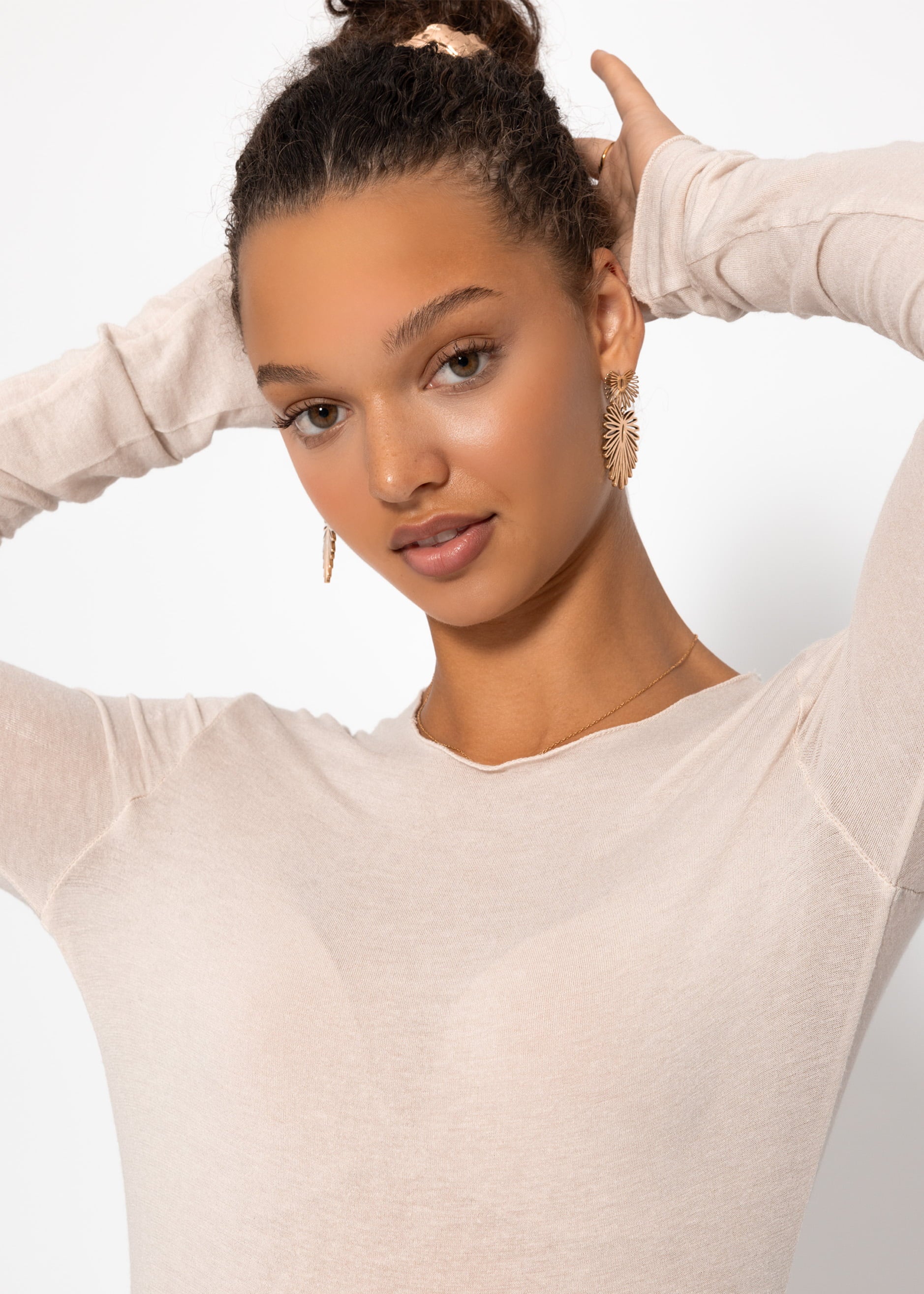 Leicht transparentes Langarmshirt mit Kaschmiranteil - beige