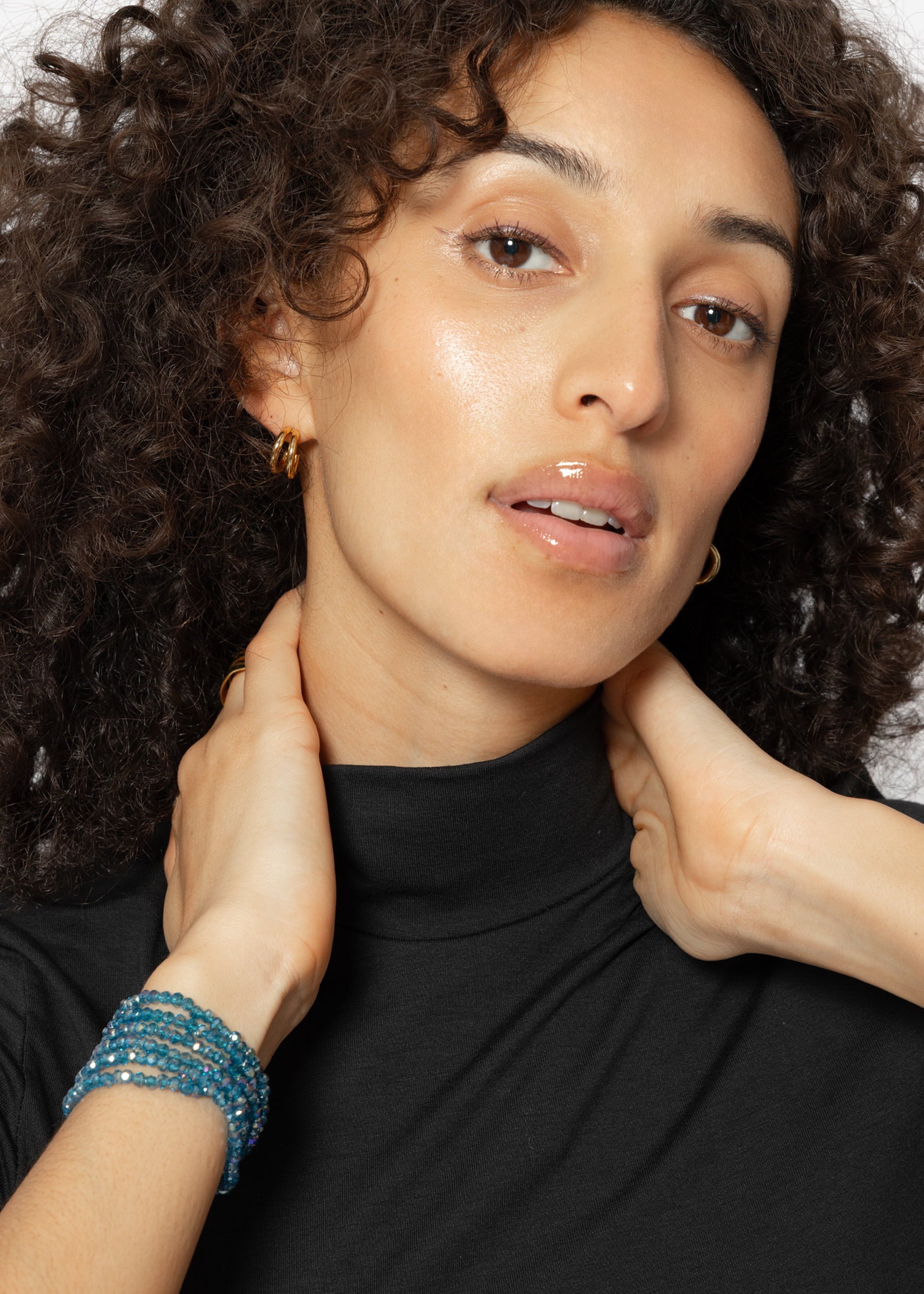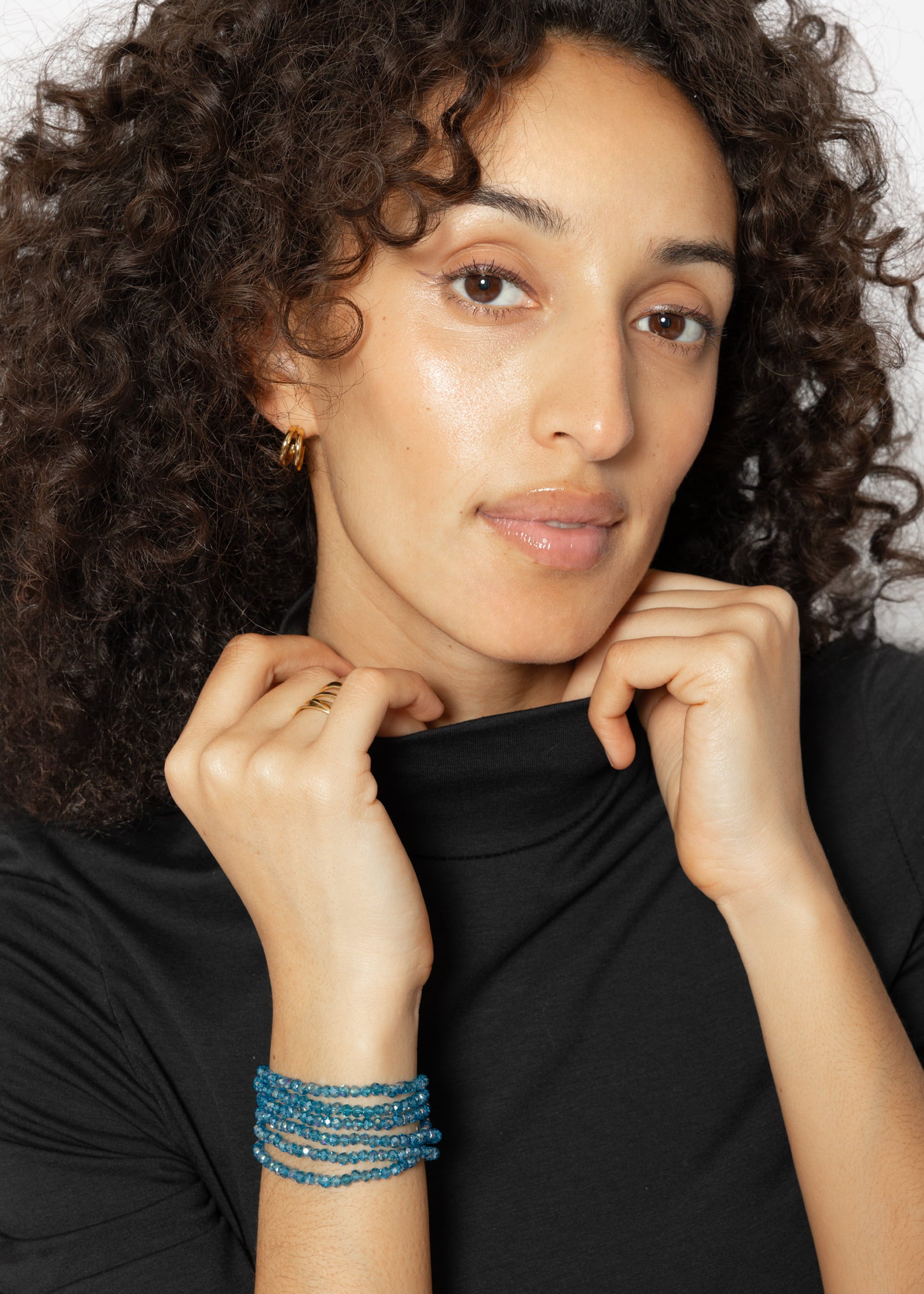 Dieses schimmernde, mehrreihige Armband ist ein echter Hingucker und verleiht jedem Outfit einen Hauch von Eleganz. Aus kleinen, glitzernden Steinchen gefertigt, schmiegt es sich durch sein elastisches Design perfekt an das Handgelenk an und lässt sich mühelos mehrfach umwickeln. Die elastische Passform sorgt nicht nur für einen hohen Tragekomfort, sondern auch dafür, dass das Armband bei jeder Bewegung sicher am Handgelenk bleibt. Ob solo oder in Kombination mit anderen Schmuckstücken - das vielseitige Armband verleiht deinem Look Raffinesse und stilvollen Glanz.