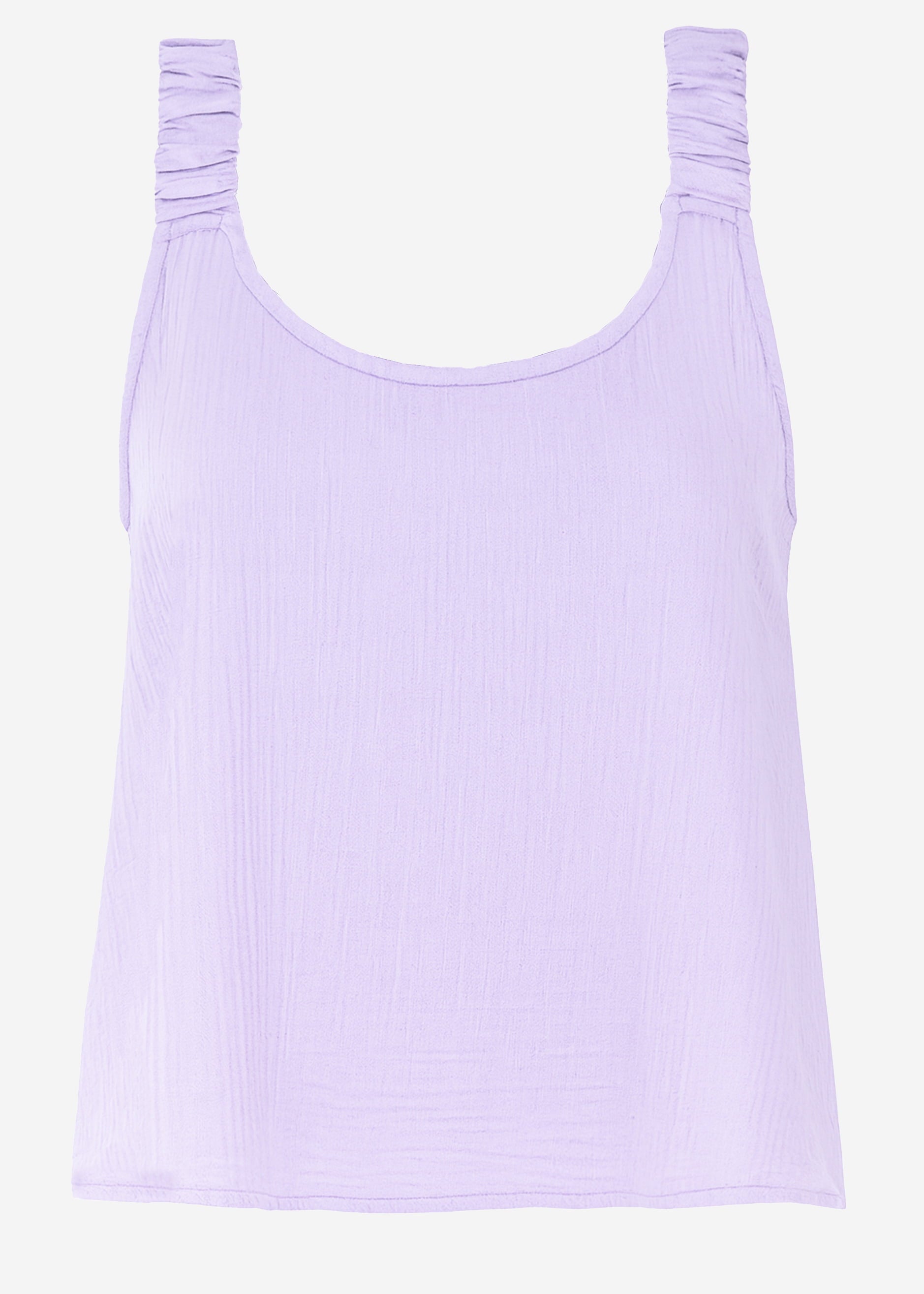 Dieses luftige Musselin-Top bringt Leichtigkeit in deinen Sommerlook. Es ist aus angenehm weichem Baumwoll-Musselin gefertigt und bietet dir ein besonders komfortables Tragegefühl. Die elastischen Träger mit gerafften Details sehen nicht nur verspielt aus, sondern passen sich auch flexibel an und garantieren einen bequemen Sitz. Der leicht ausgestellte Schnitt umspielt locker die Figur und macht das Top so zum perfekten Begleiter für entspannte Tage in der Sonne.