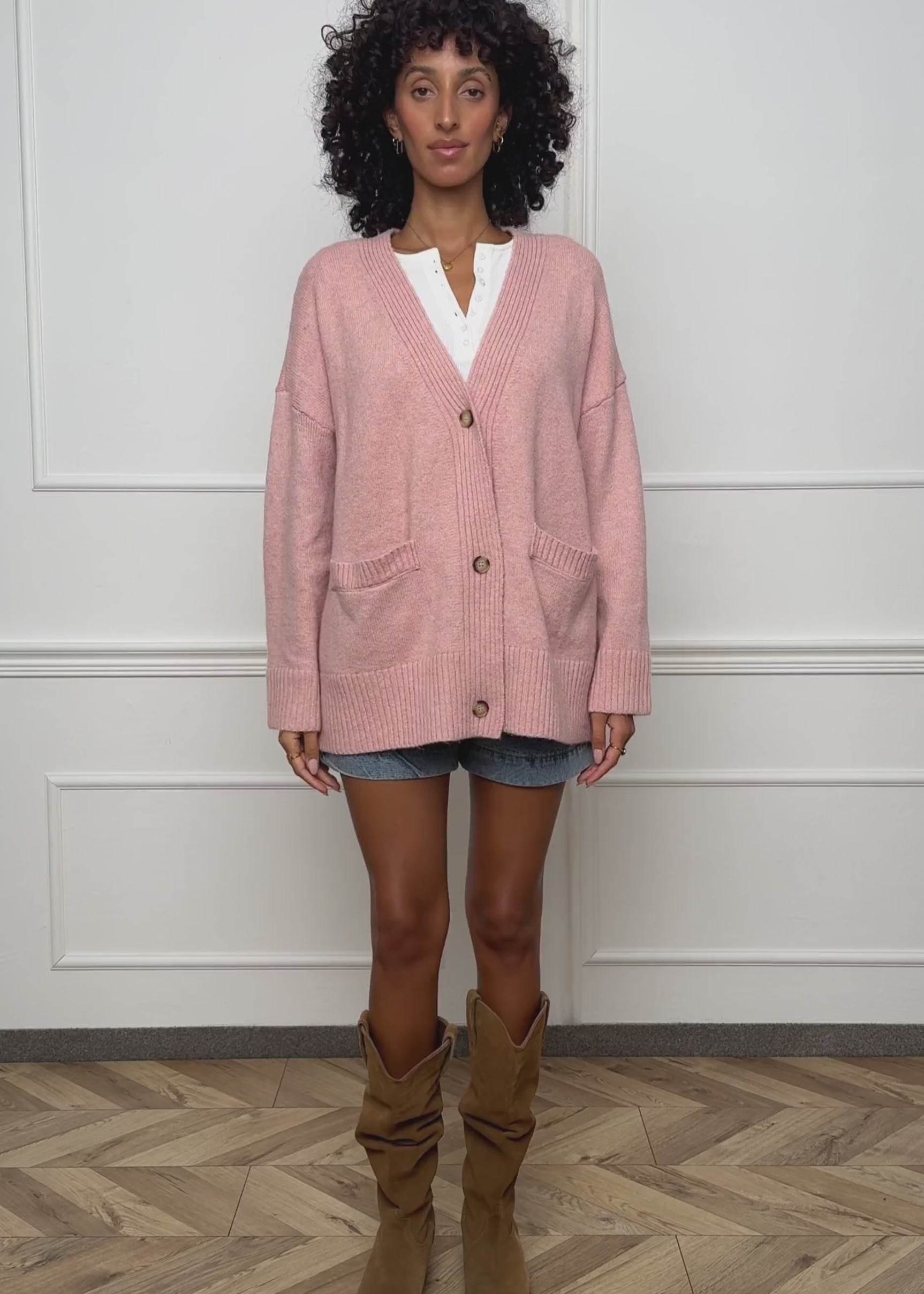 Oversize Cardigan mit Taschen - puderrosa