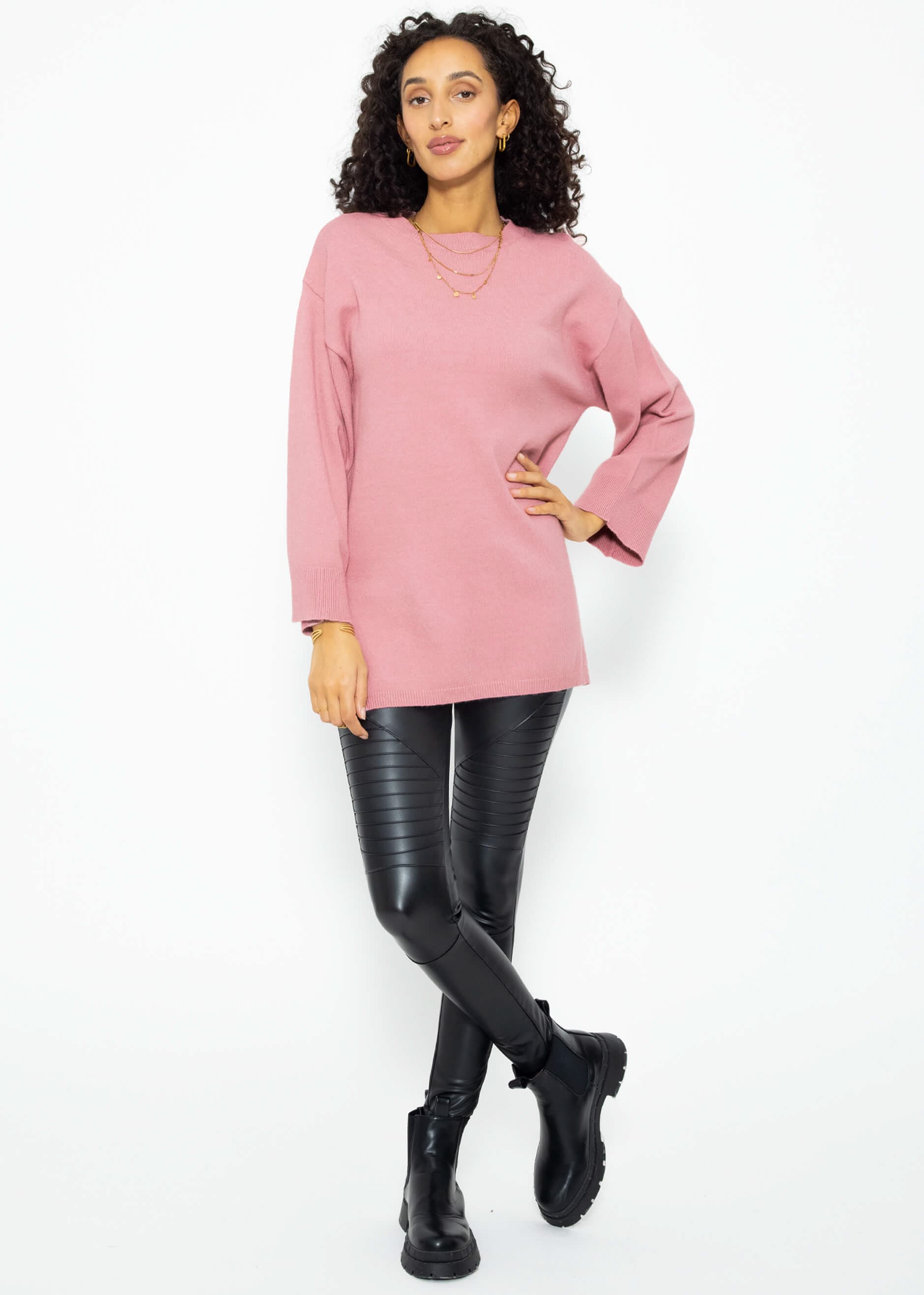 Oversize Pullover mit Seitenschlitzen - altrosa