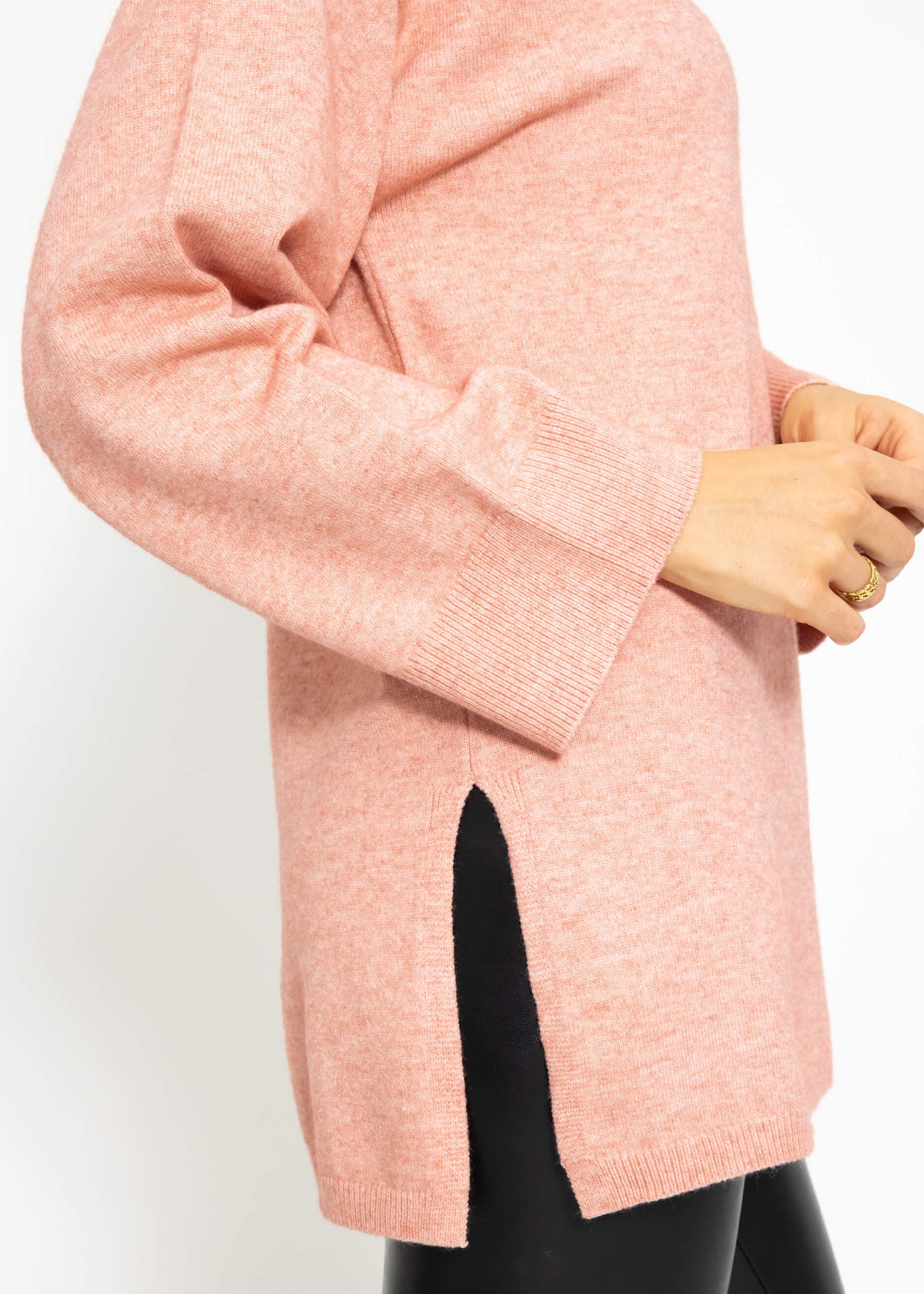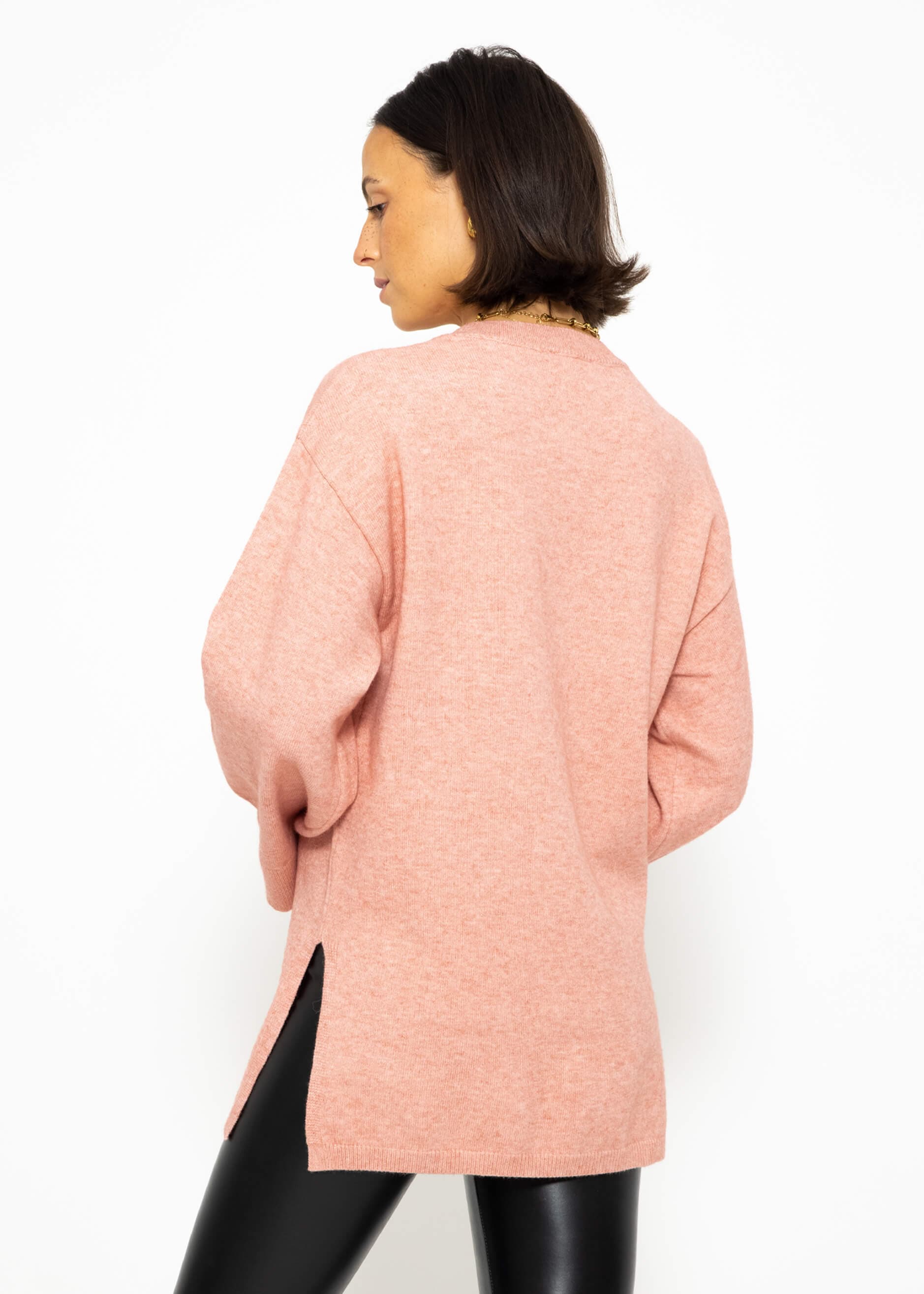 Oversize Pullover mit Seitenschlitzen - rosa