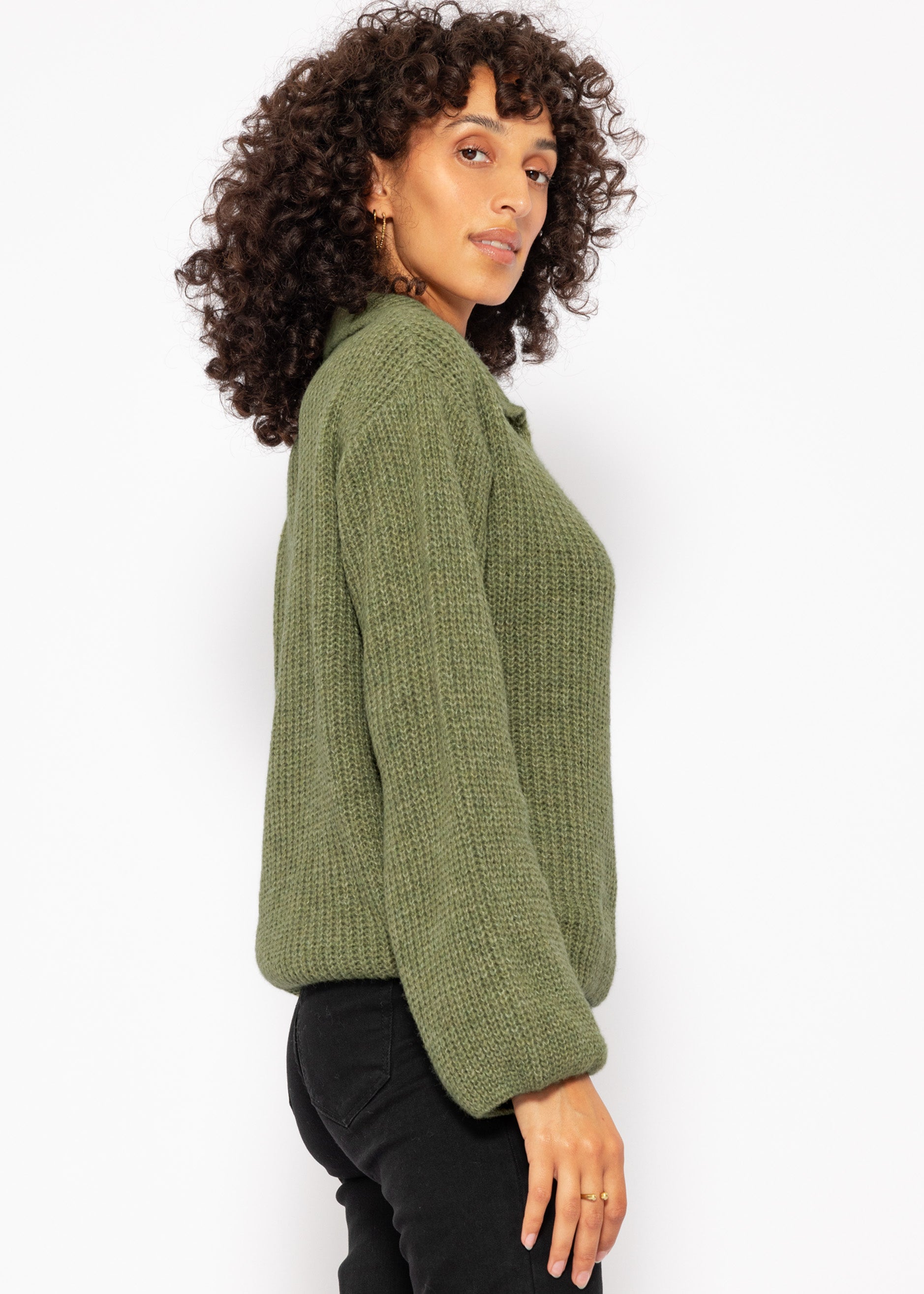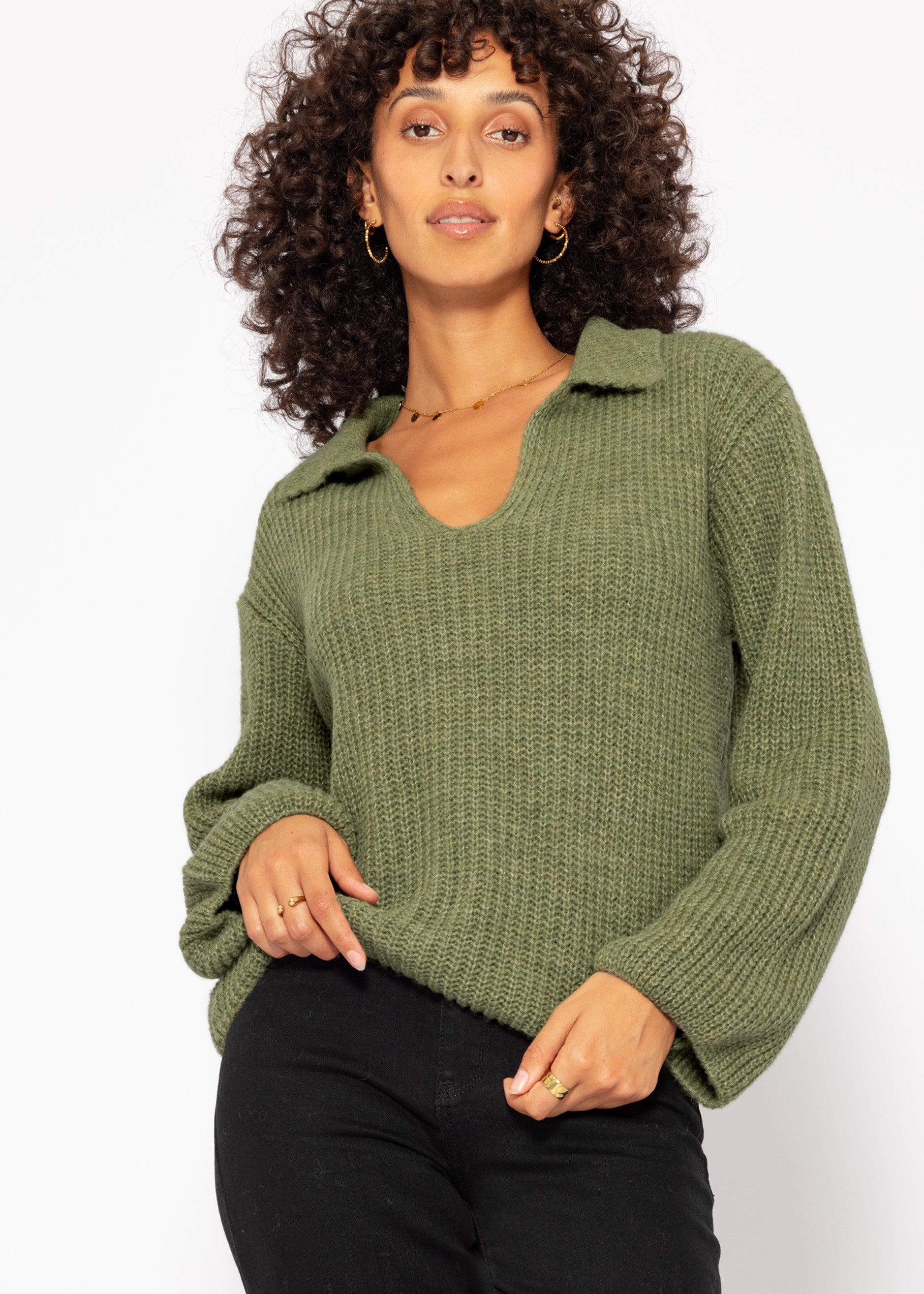 Oversize Pullover mit V-Ausschnitt und Kragen - khaki