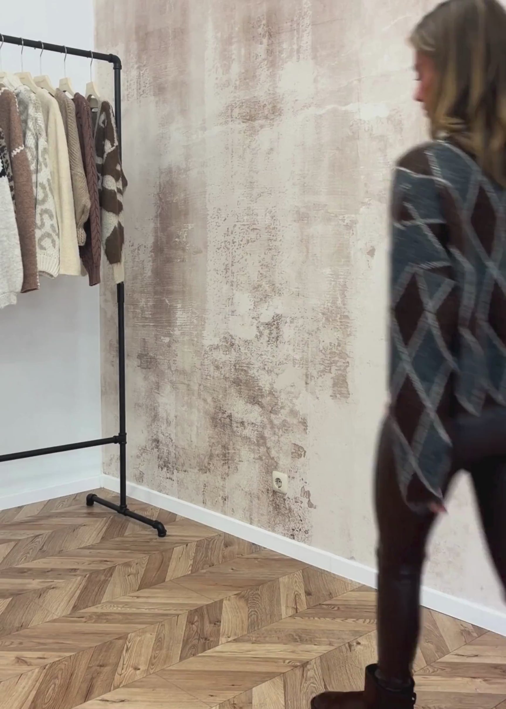 Oversize Strickpullover mit Rautenmuster - grau-braun
