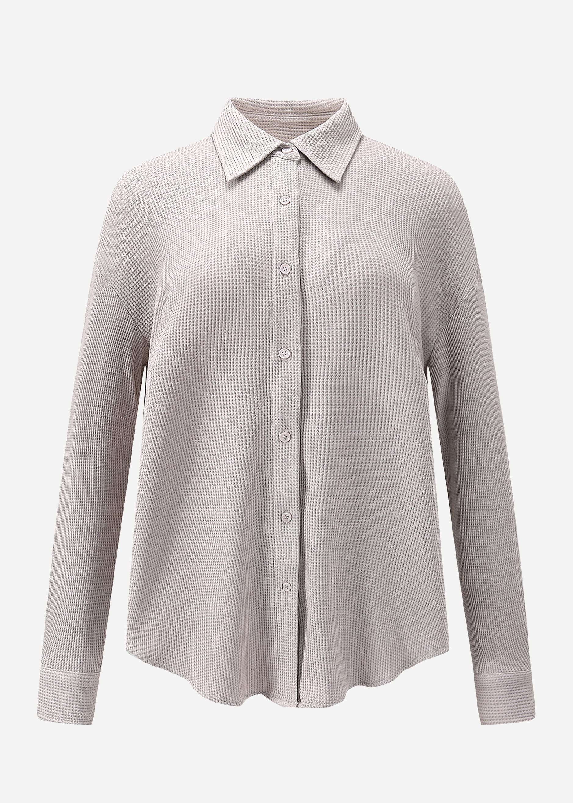 Diese Bluse ist der Inbegriff von lässiger Schönheit und verleiht deinem Look das gewisse Extra. Das hochwertige Waffelpiqué sorgt für eine ansprechende Struktur und bietet gleichzeitig höchsten Tragekomfort. Der Oversize-Schnitt, die langen Ärmel sowie die überschnittenen Schultern sorgen für einen entspannten und angesagten Look. Knopfleiste, Manschetten an den langen Ärmeln sowie Kragen verleihen der Bluse klassische Details, während die querlaufende Naht am Rücken Raffinesse hinzufügt und die Silhouette der Bluse betont. Trage sie locker über Jeans für einen lässigen Look oder stecke sie in einen Rock für einen schickeren Auftritt am Abend.