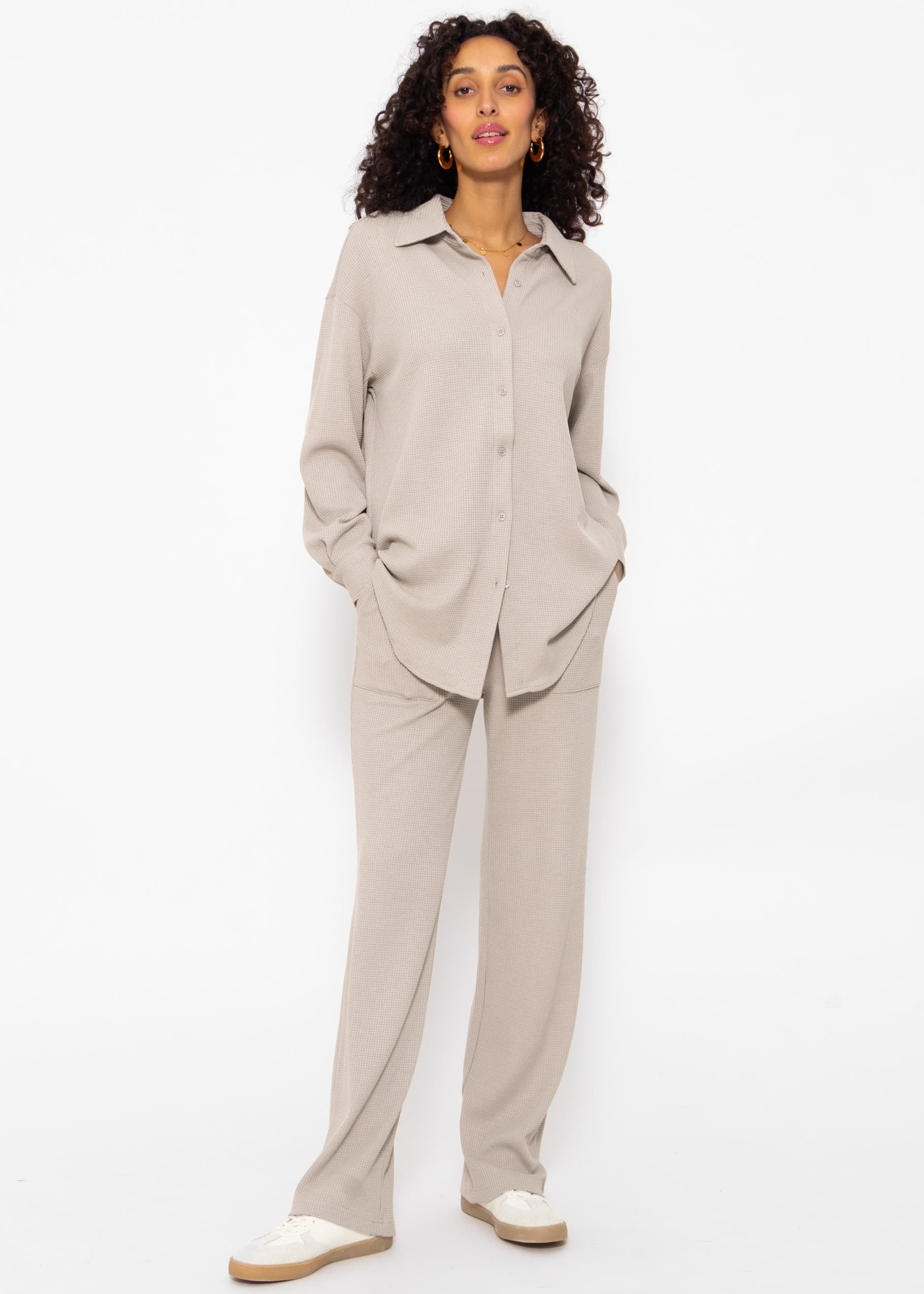 Oversize Waffelpiqué Bluse - taupe