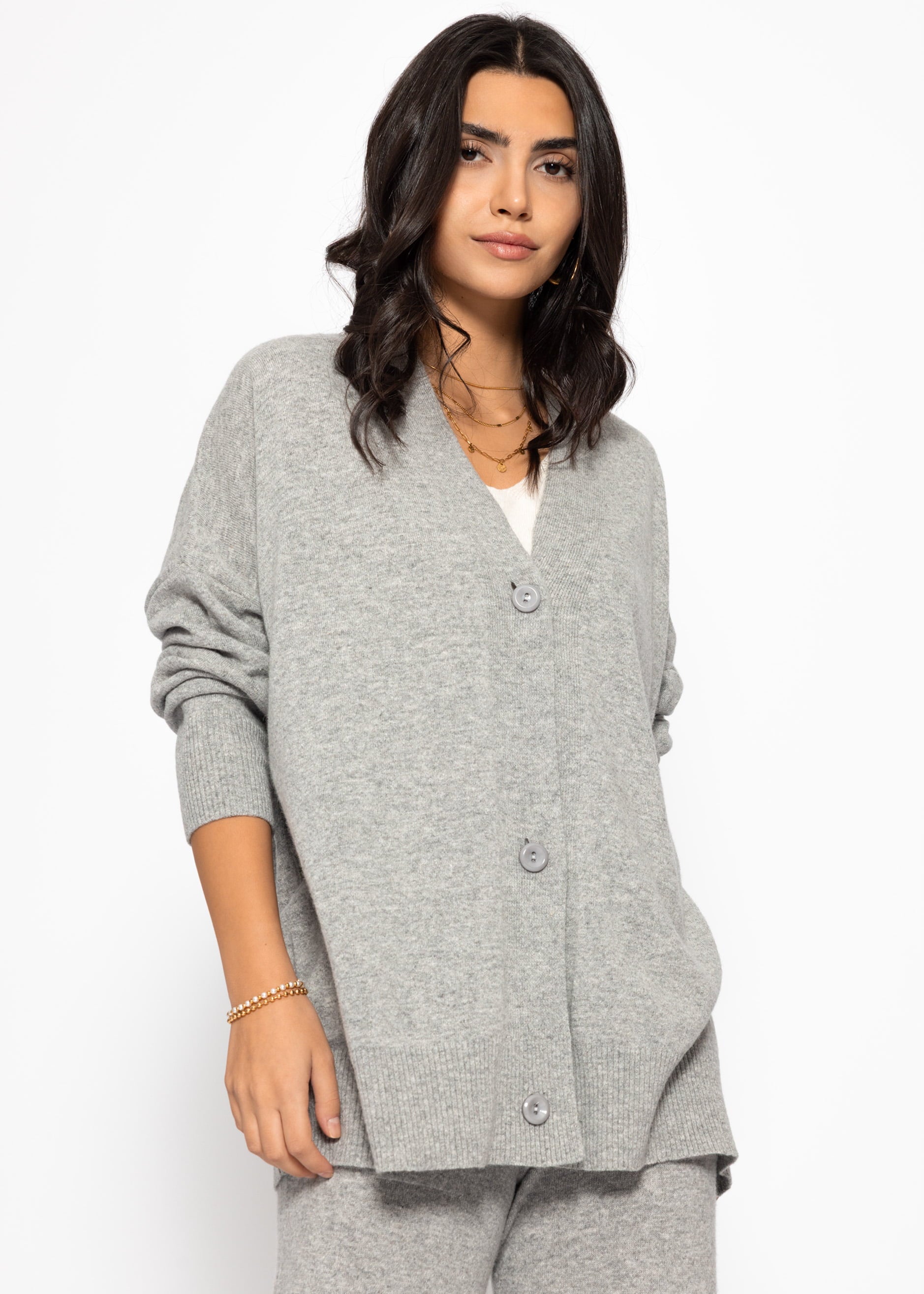 Oversized Cardigan mit V-Ausschnitt und Kaschmiranteil - grau