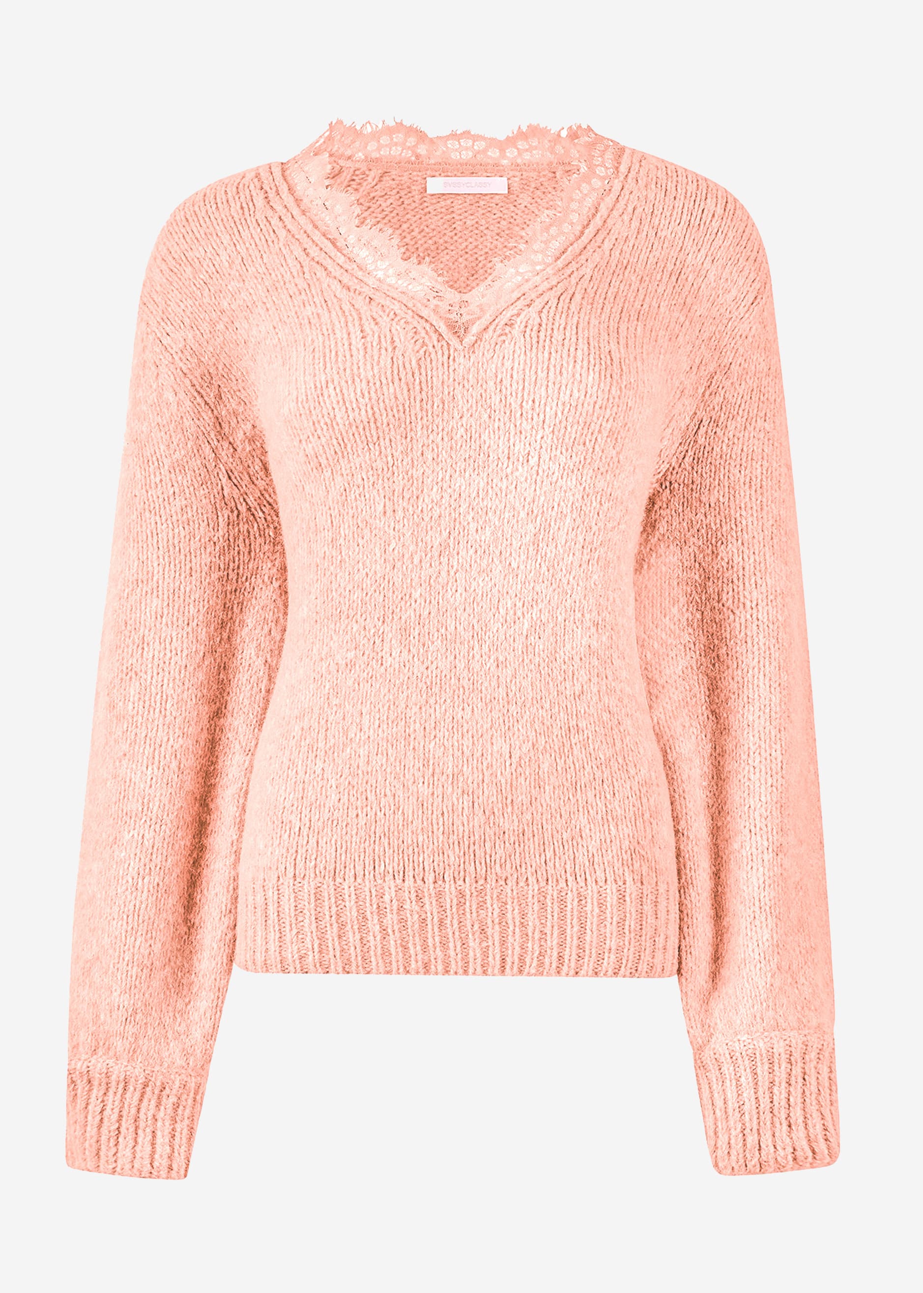 Pullover mit Spitzen-Ausschnitt - hellrosa