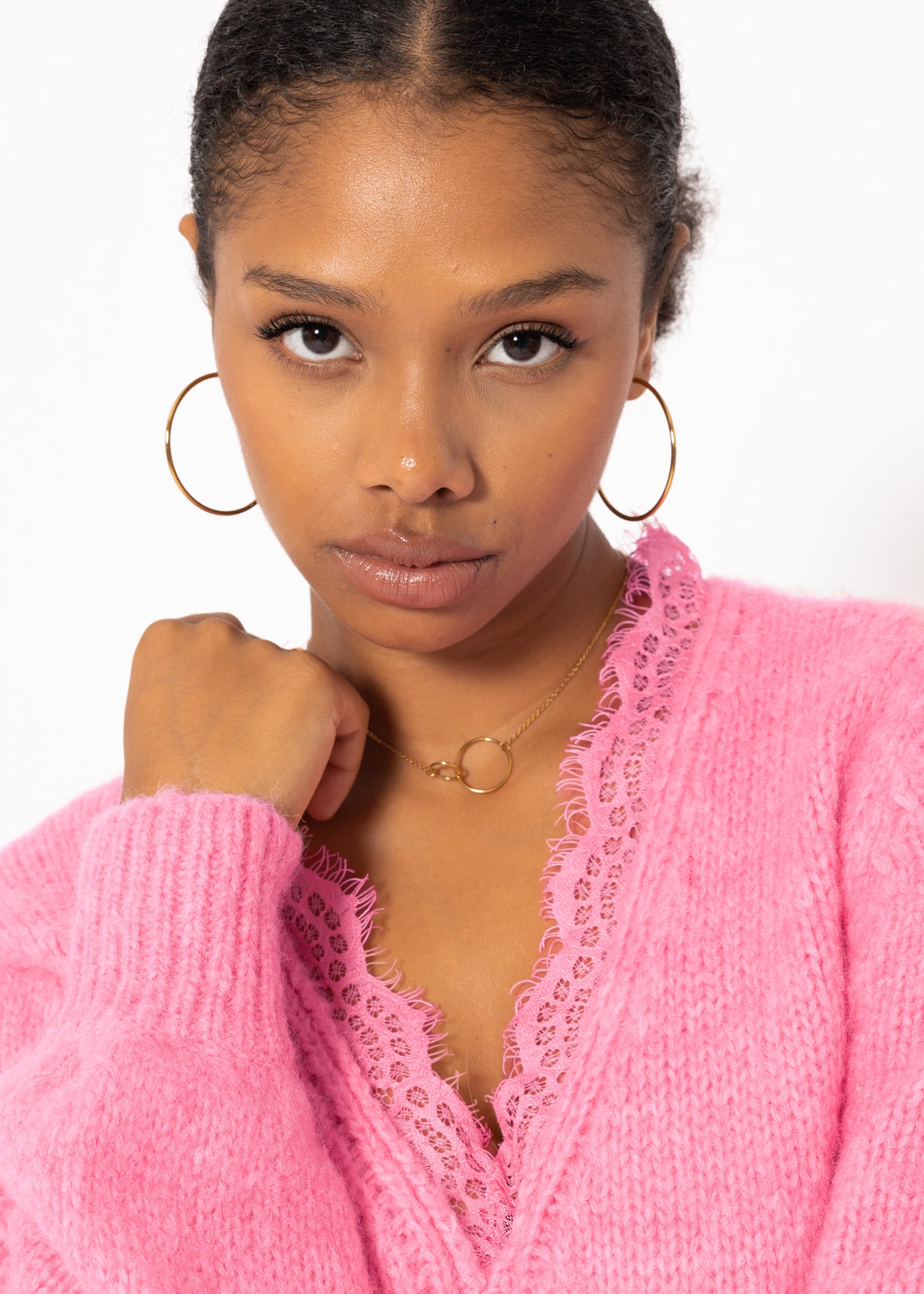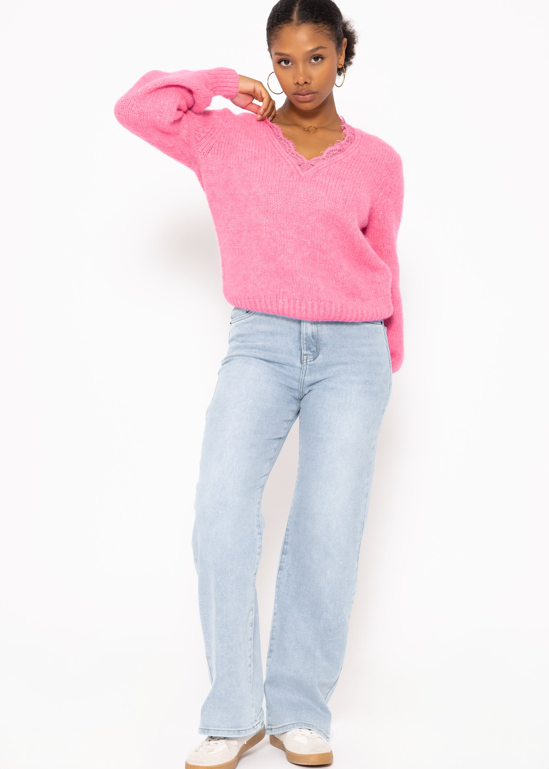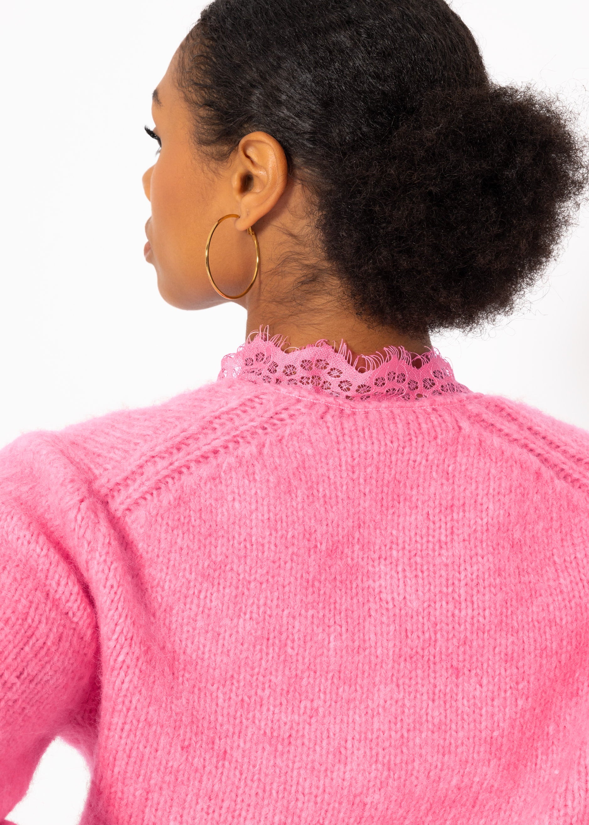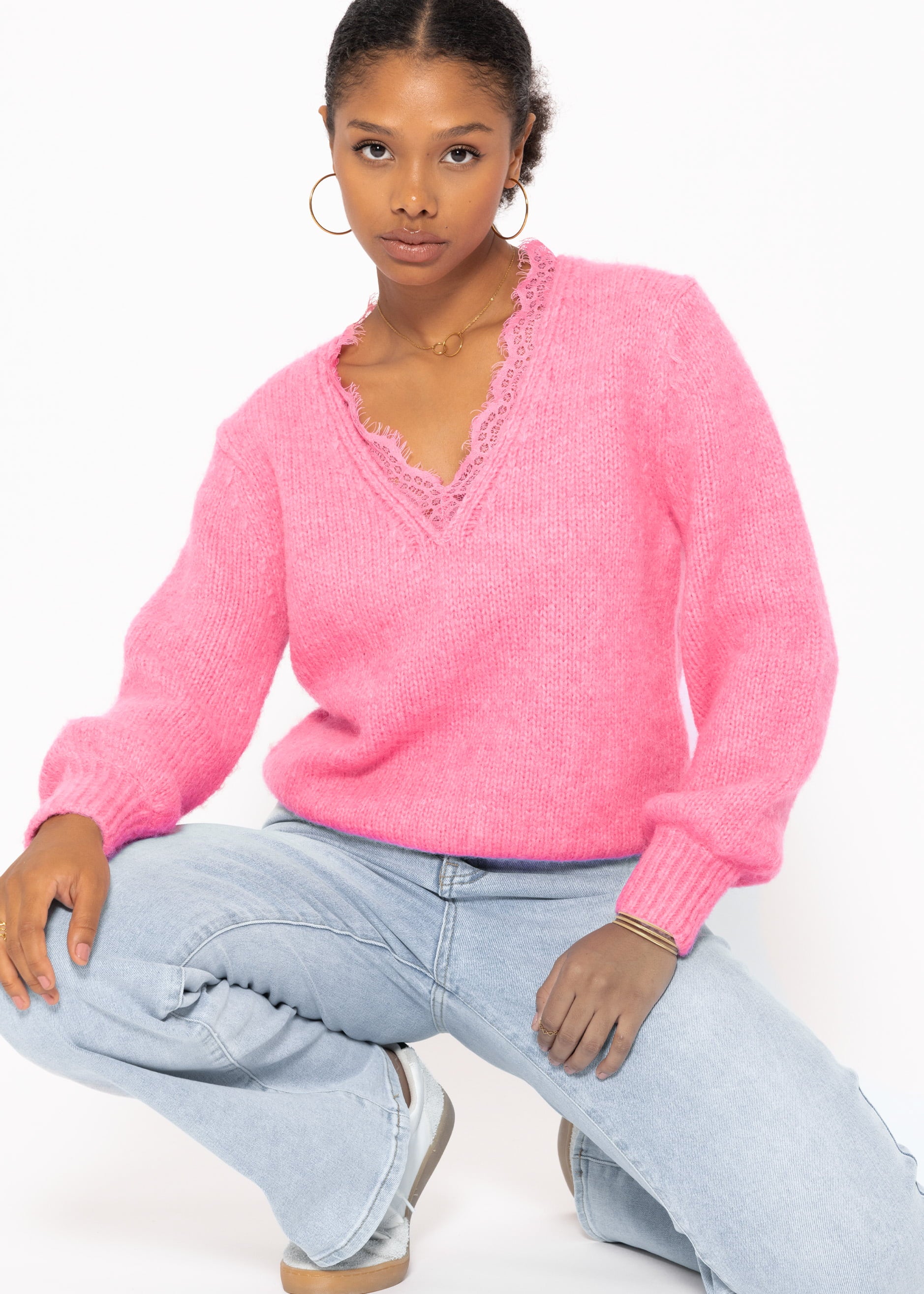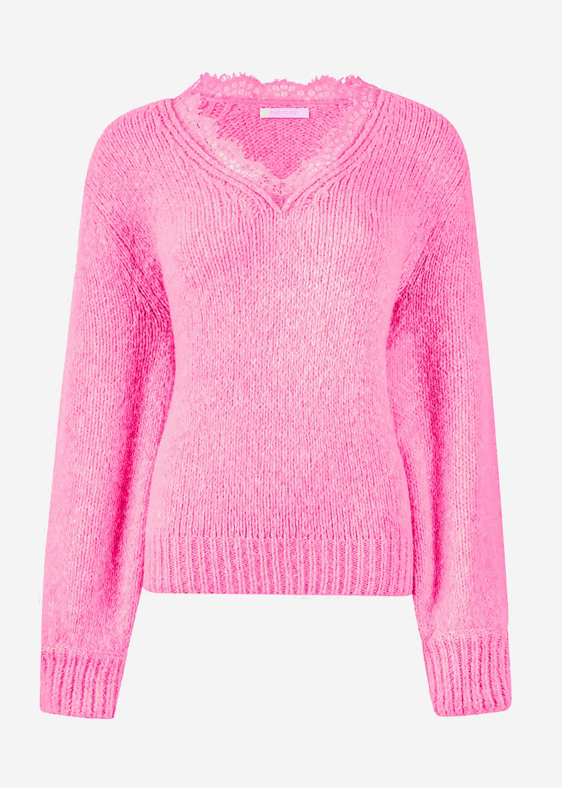 Pullover mit Spitzen-Ausschnitt - pink