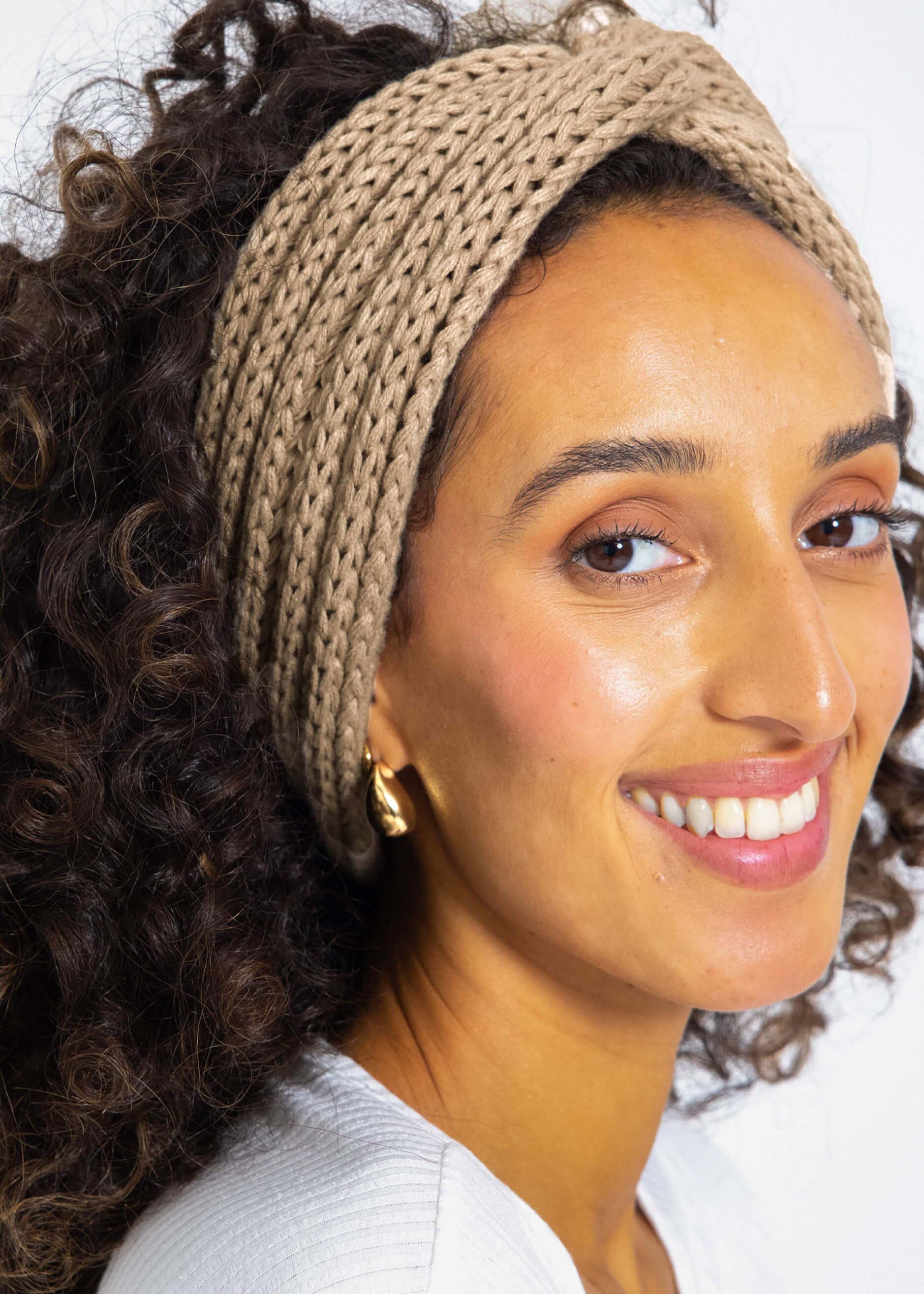 Rippenstrick Stirnband in Beige