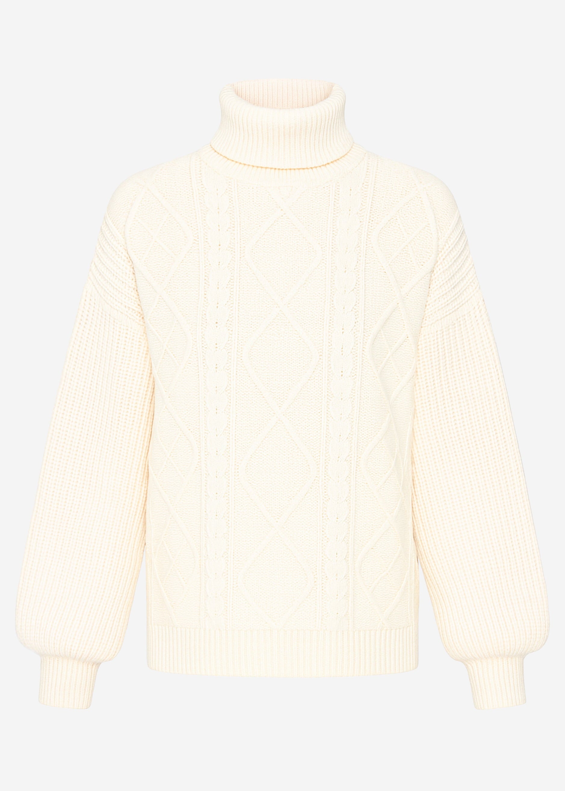 Rollkragenpullover mit Zopfmuster - vanillegelb