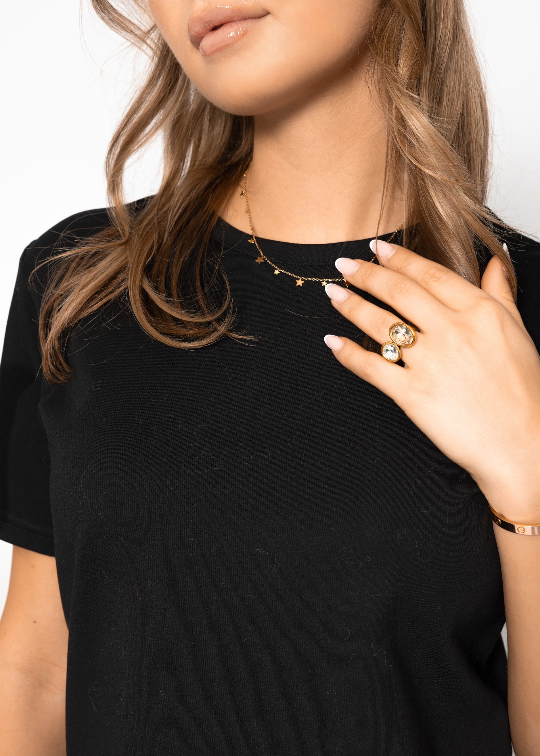 Dieses legere T-Shirt besteht aus Baumwolle mit Elasthan und bietet ein weiches Tragegefühl. Es besitzt eine lockere Passform, kurze Ärmel und einen klassischen Rundhalsausschnitt.