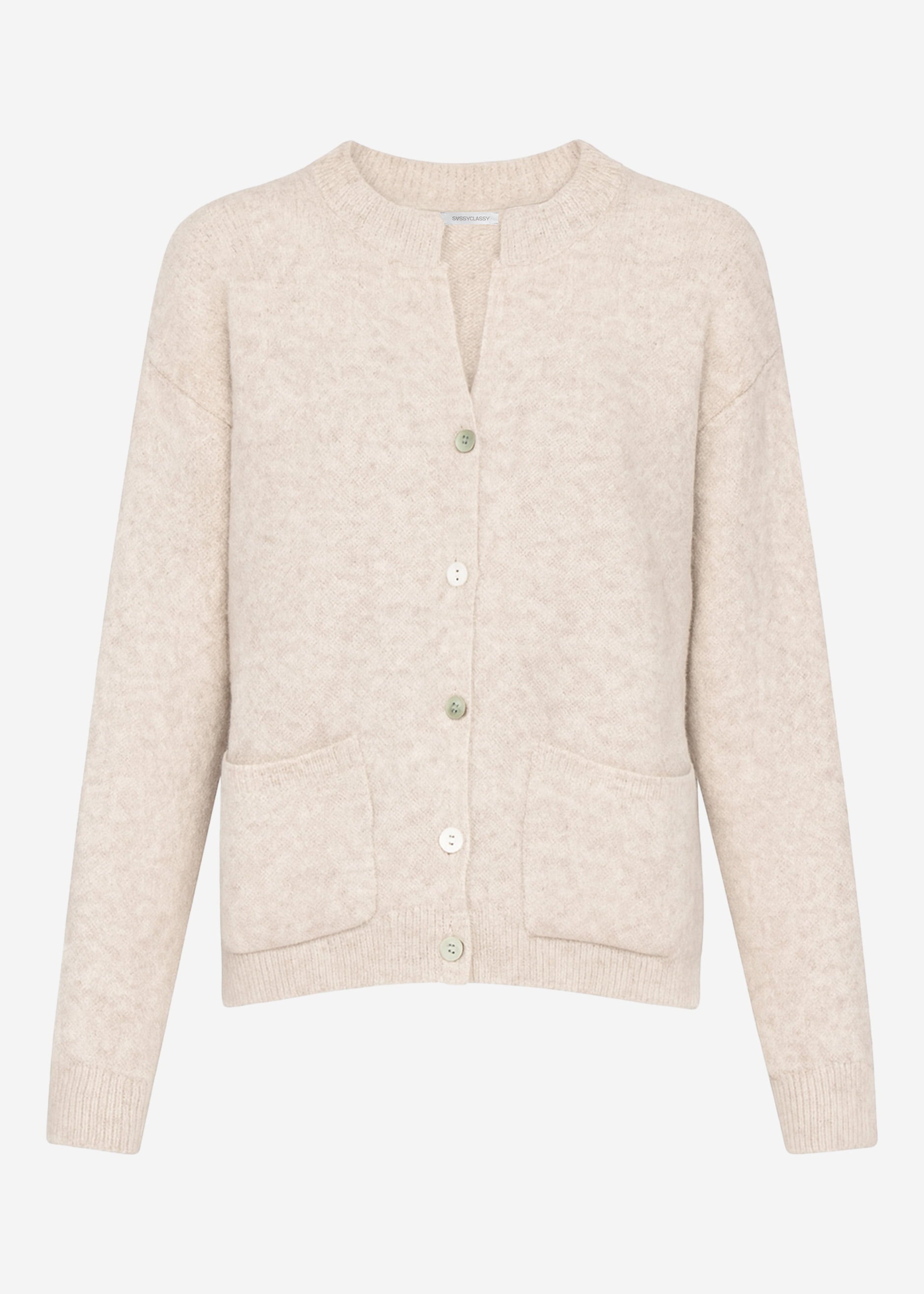 Co-Creation anna___braun x SASSYCLASSY: Strickjacke mit aufgesetzten Taschen in Greige