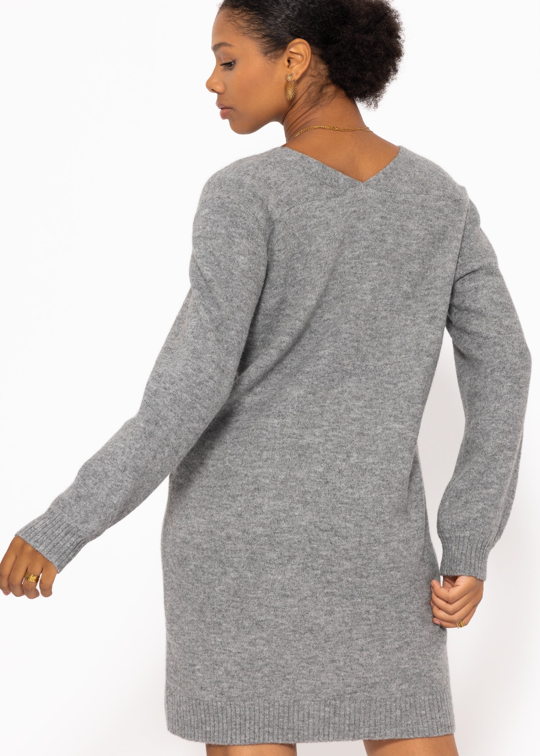 Strickkleid mit V-Ausschnitt - dunkelgrau