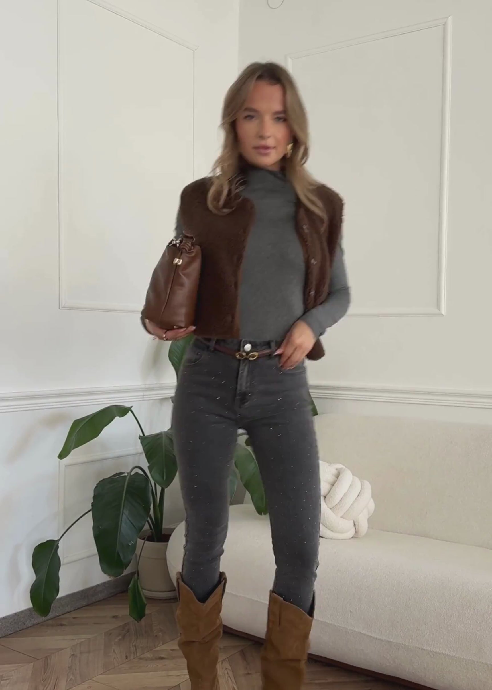 Teddy Weste mit Knöpfen - braun