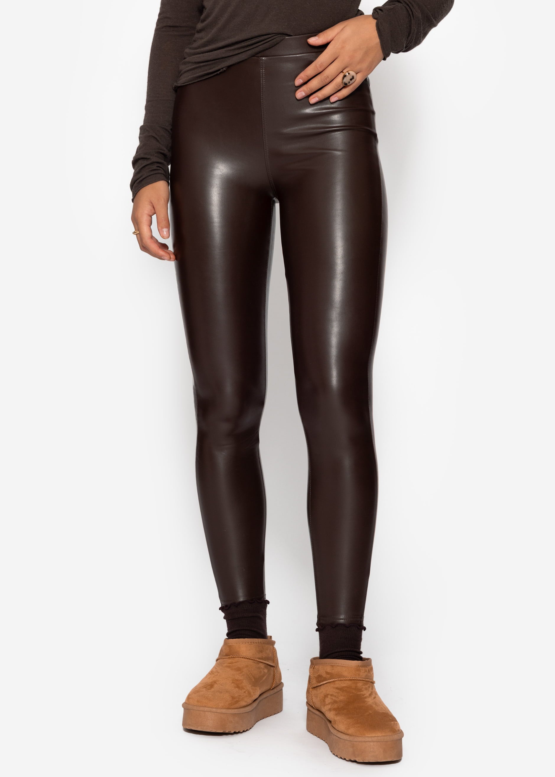 Thermo Lederleggings mit aufgesetzten Taschen, dunkelbraun