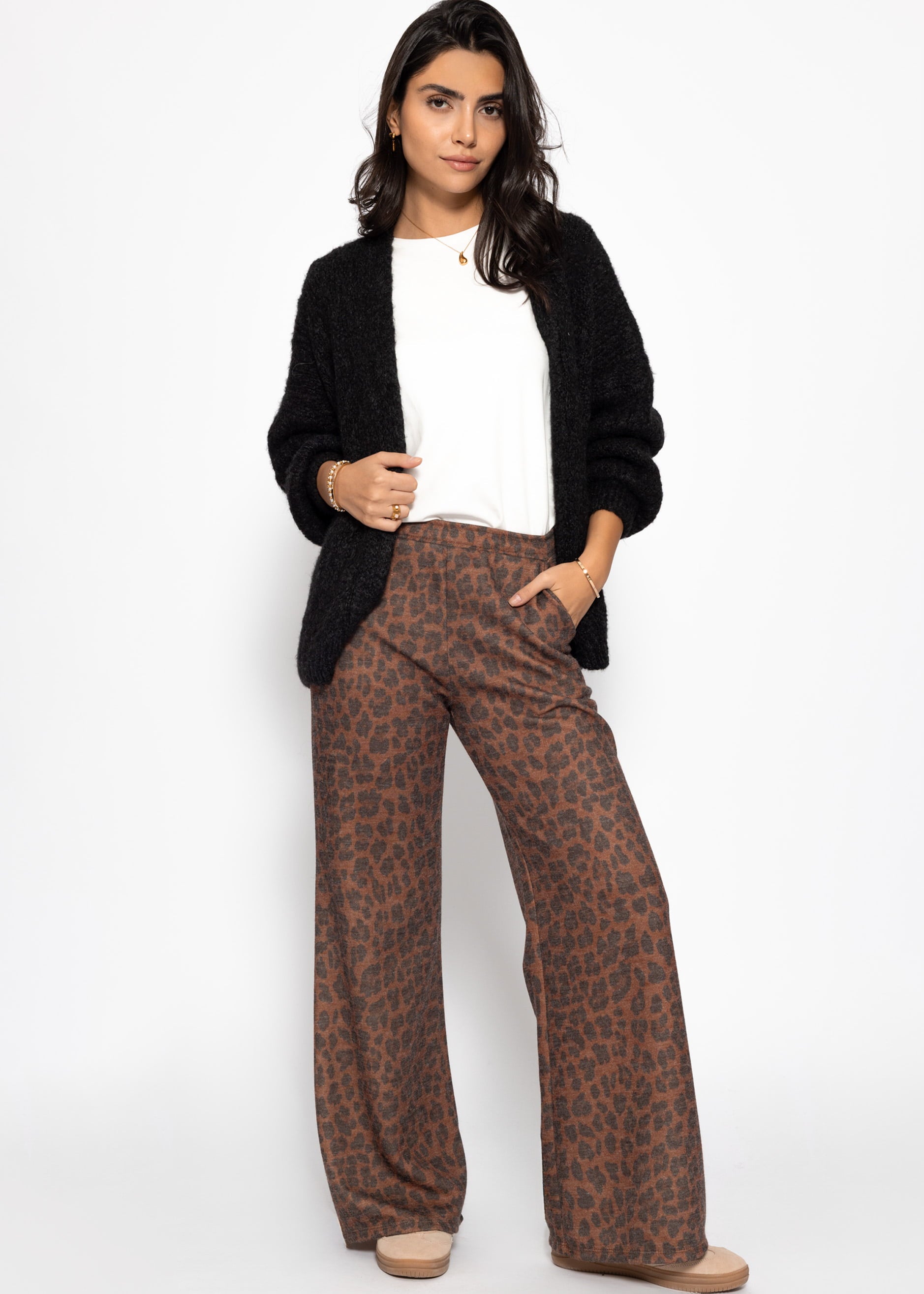 Weite Hose mit Leo-Print - braun