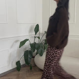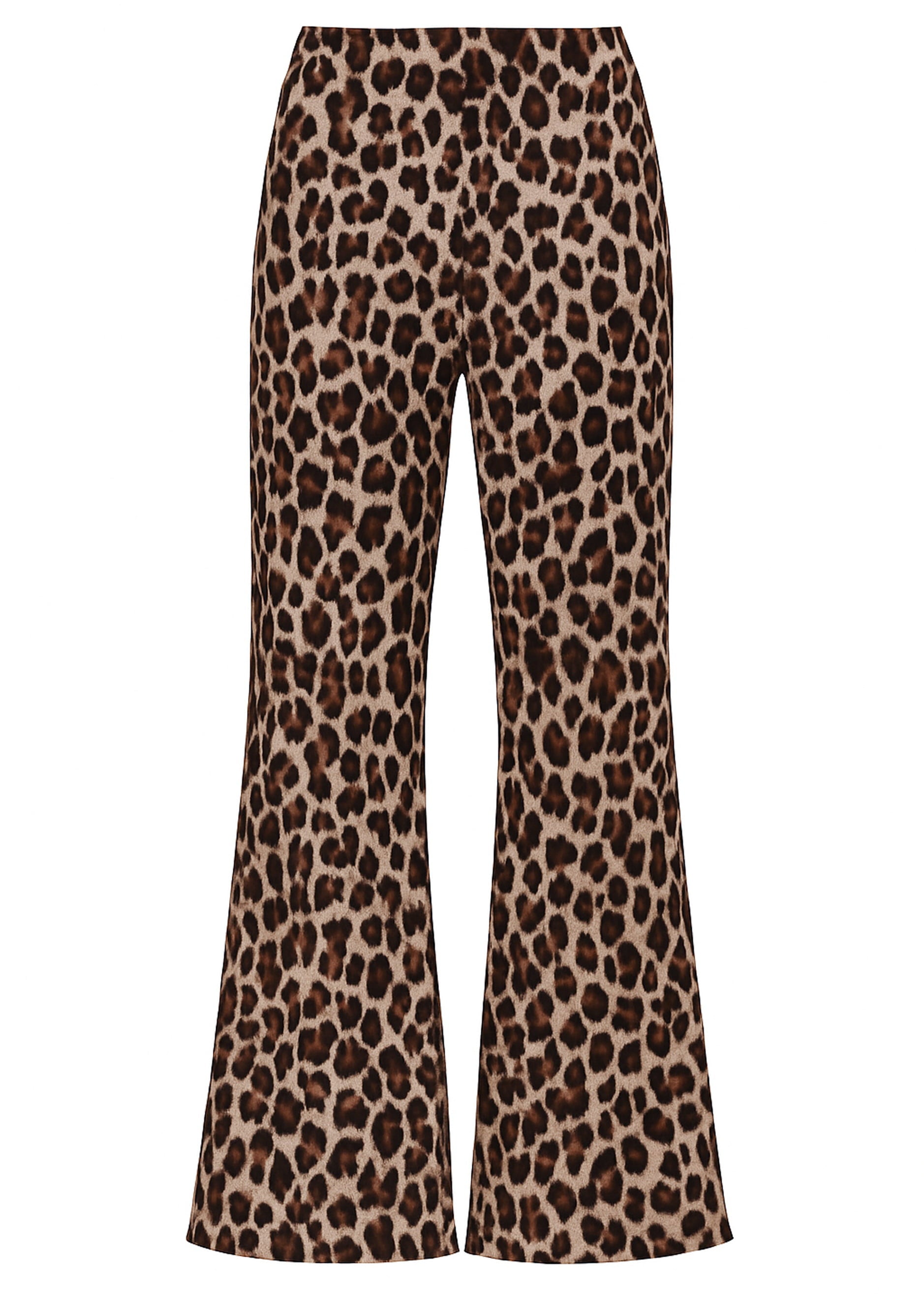 Die Jerseyhose mit Leo-Print in Beige ist ein Statement-Piece mit markantem Muster und weitem Schnitt. Sie verfügt über Eingrifftaschen und einen elastischen Bund für zusätzlichen Komfort.