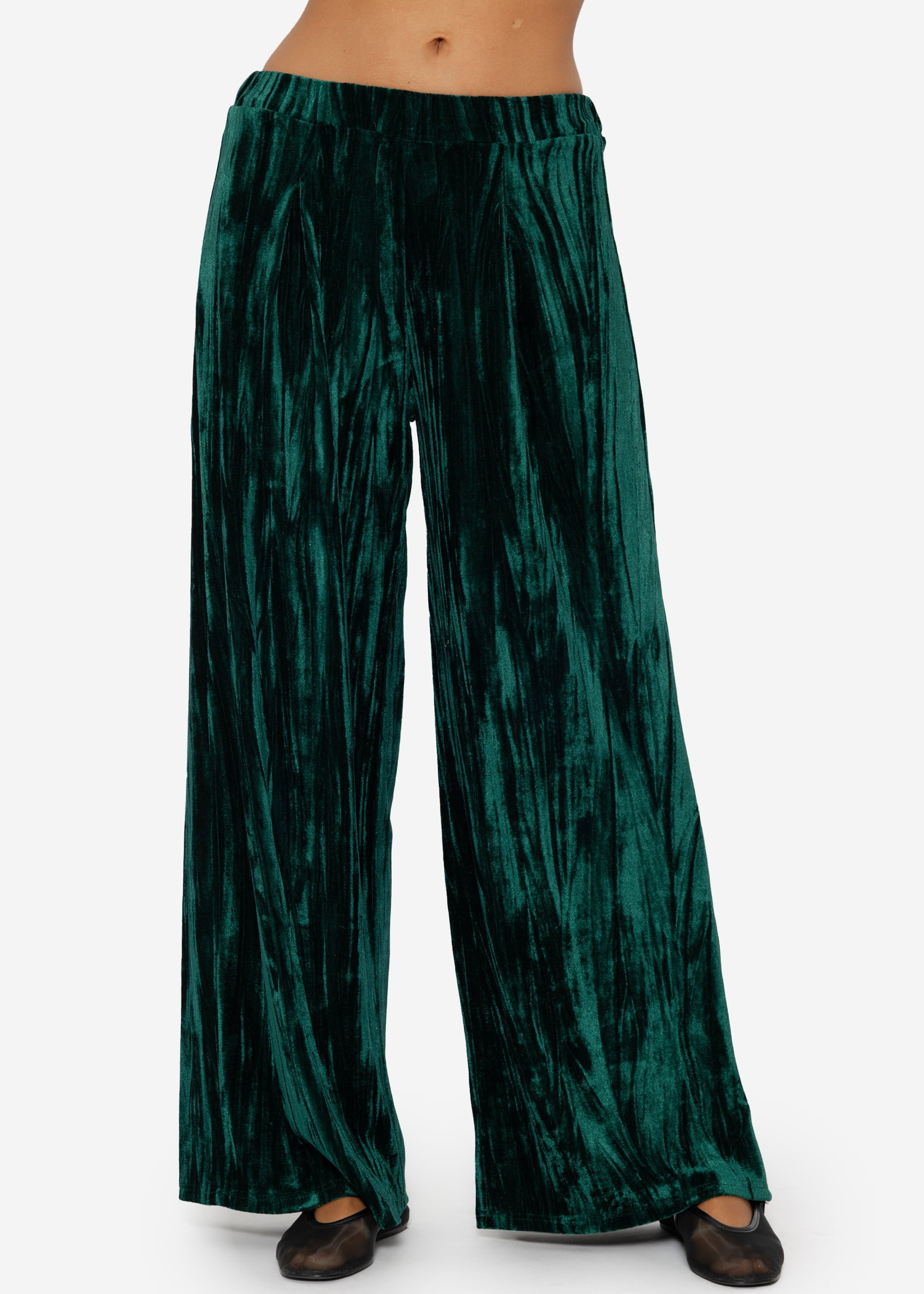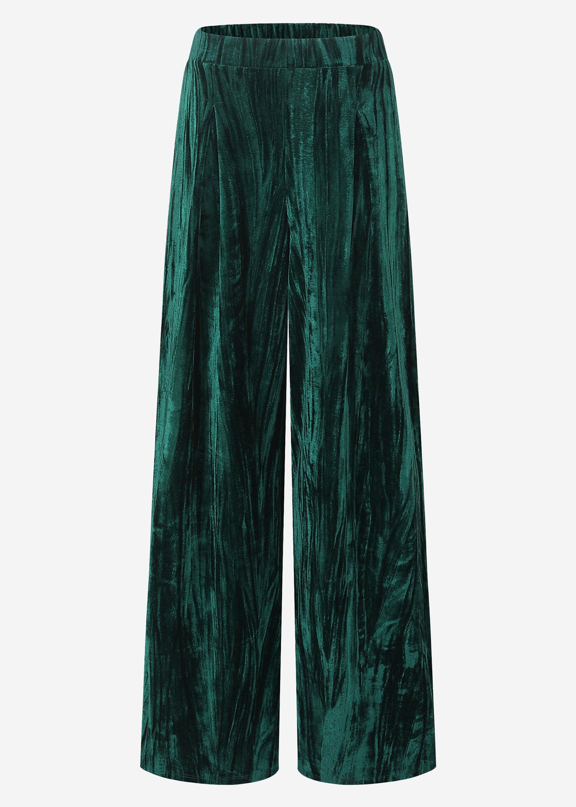 Diese elegante Samthose im High-Waist Schnitt wurde aus einem hochwertigen Samt mit Struktur gefertigt. Sie bietet mit dem Schlupfbund einen angenehmen Sitz und eine schmeichelnde Silhouette. Das weite Bein sorgt für einen trendigen Look, der zu besonderen Anlässen perfekt zur Geltung kommt. Diese Hose ist die perfekte Wahl für modebewusste Frauen, die einen Hauch von Eleganz in ihren Kleiderschrank bringen möchten. Kombiniere diese Hose mit unserer passenden Jacke oder auch leicht transparente Chiffonblusen sind eine tolle Option für einen abendlichen Look.