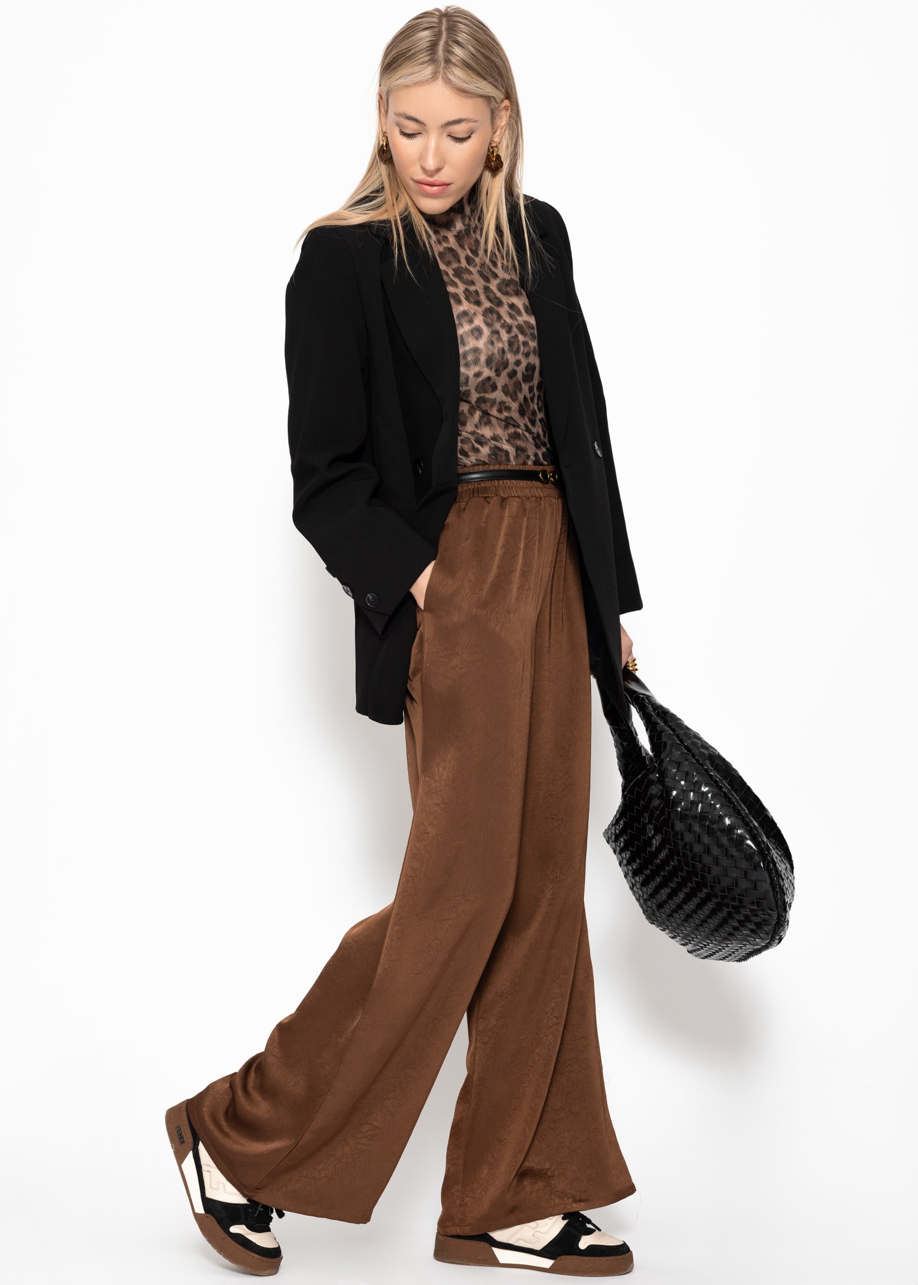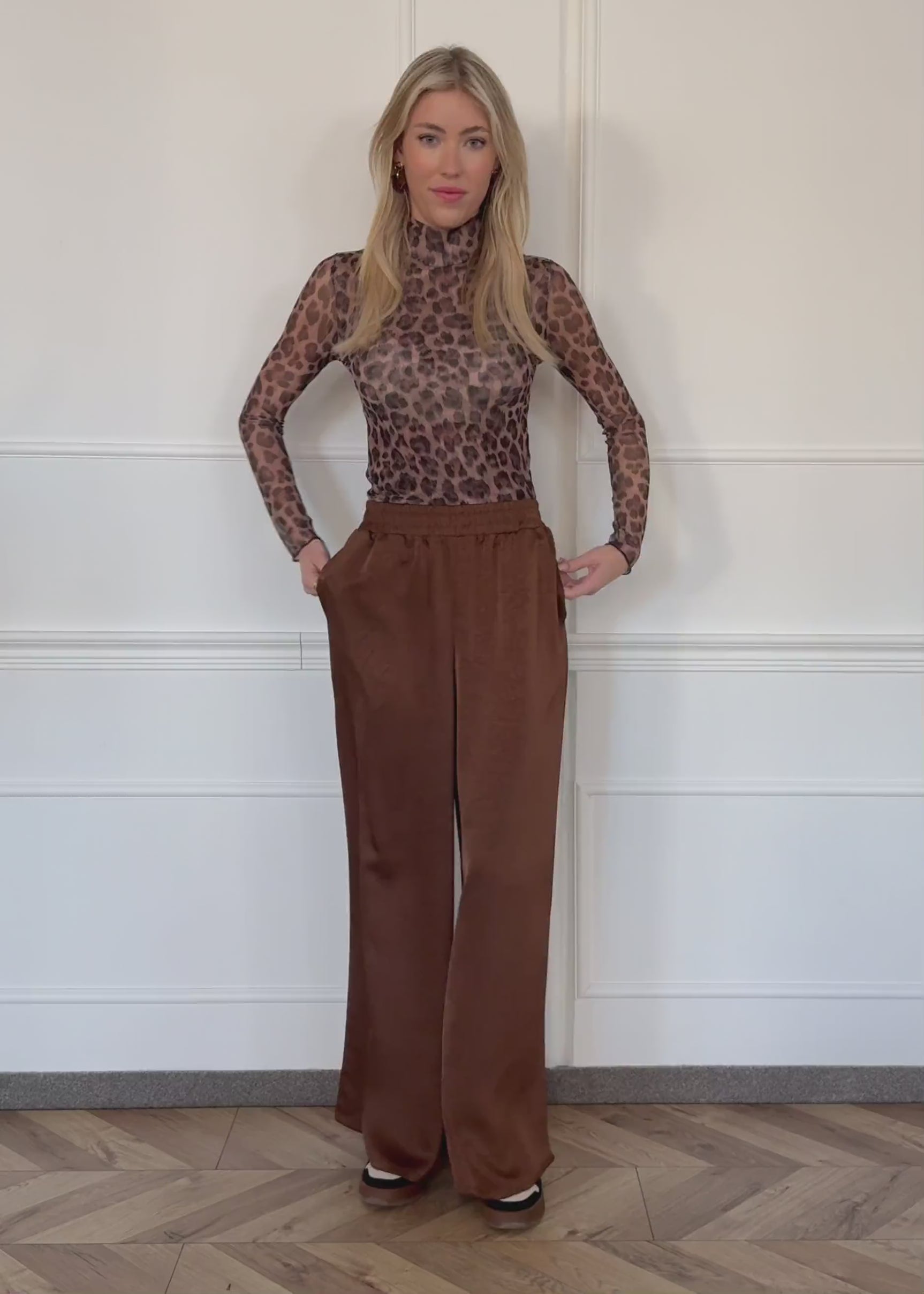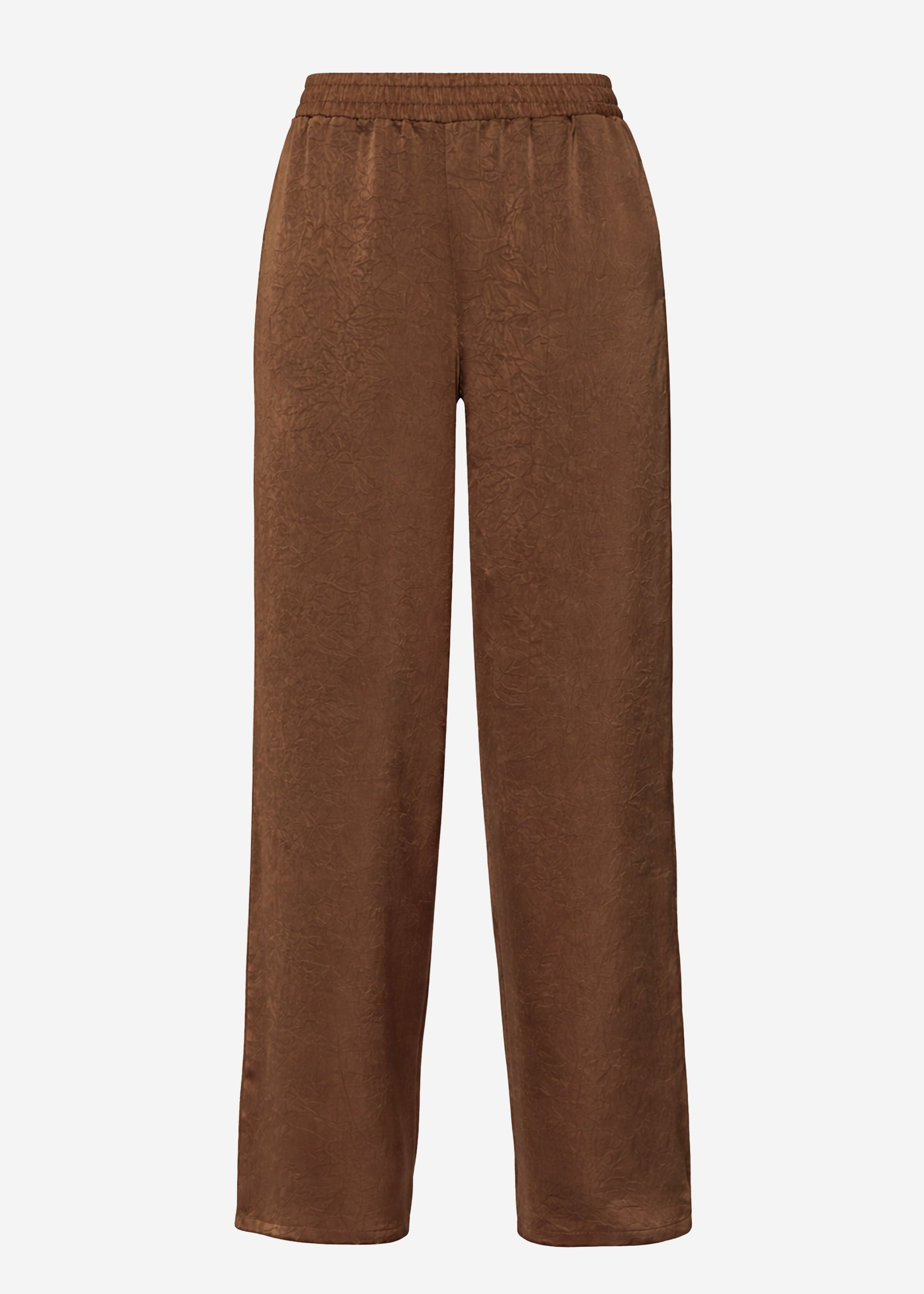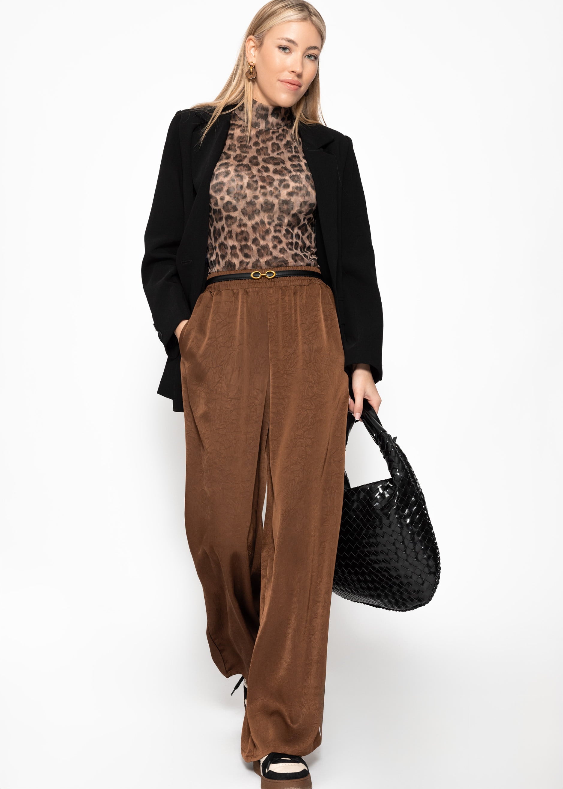 Weite Satin Hose mit Crinkle-Struktur - braun