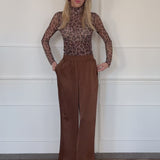 Weite Satin Hose mit Crinkle-Struktur in Braun