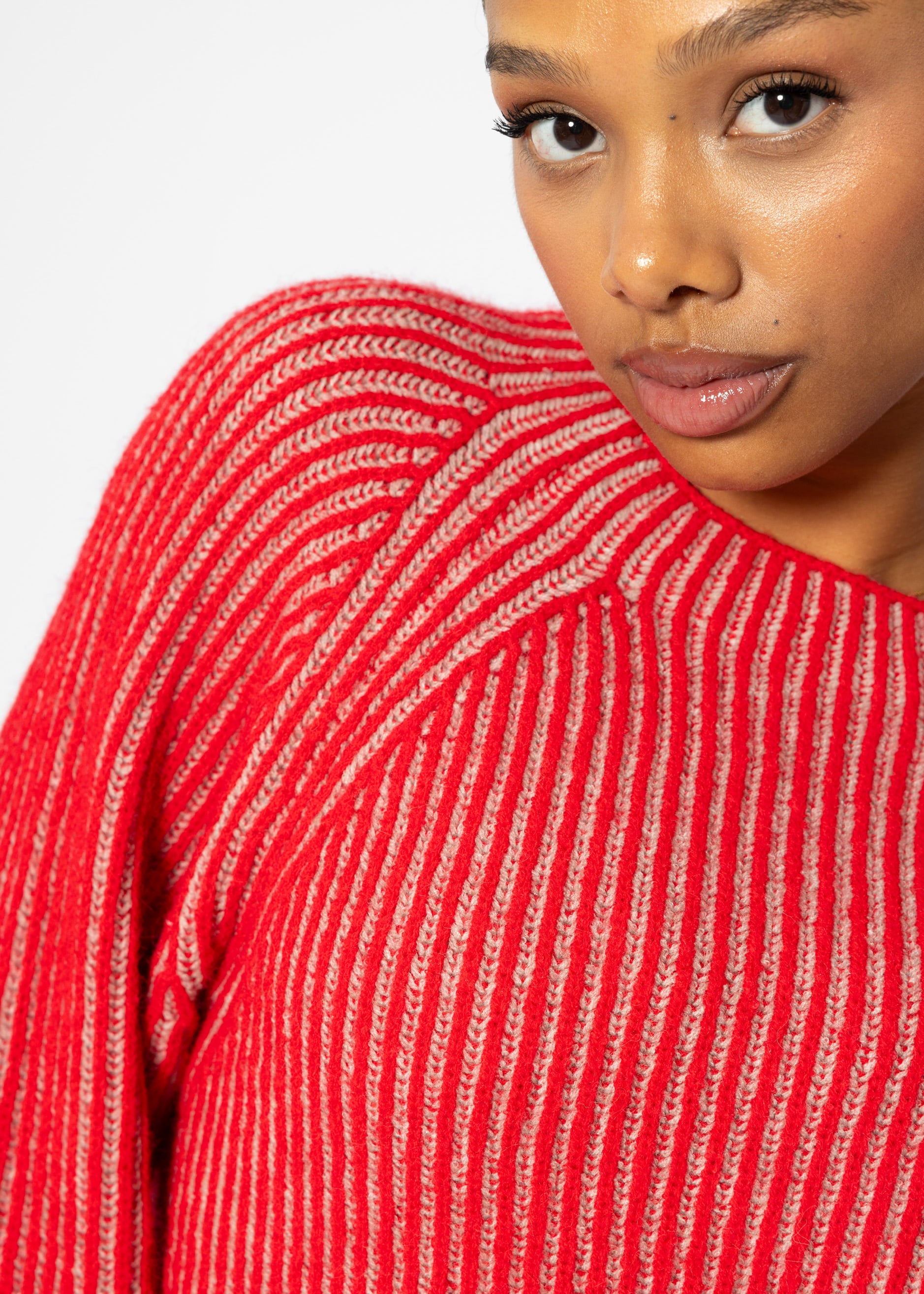 Zweifarbiger gerippter Pullover in Rot und Beige