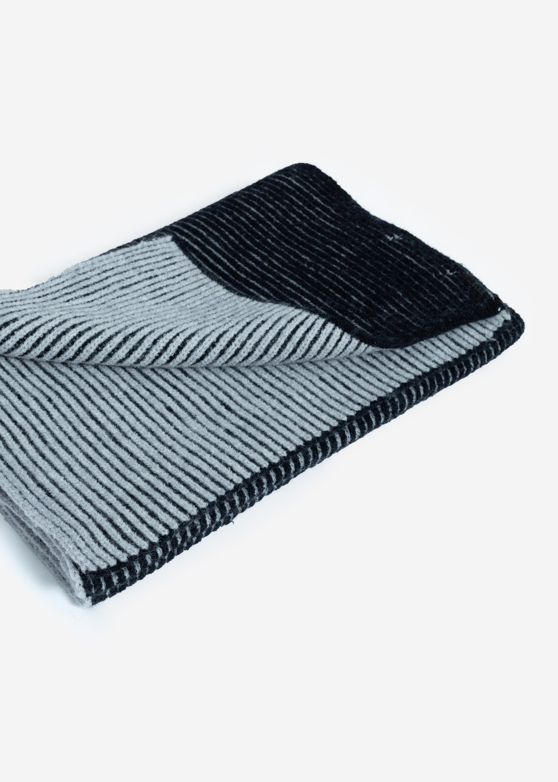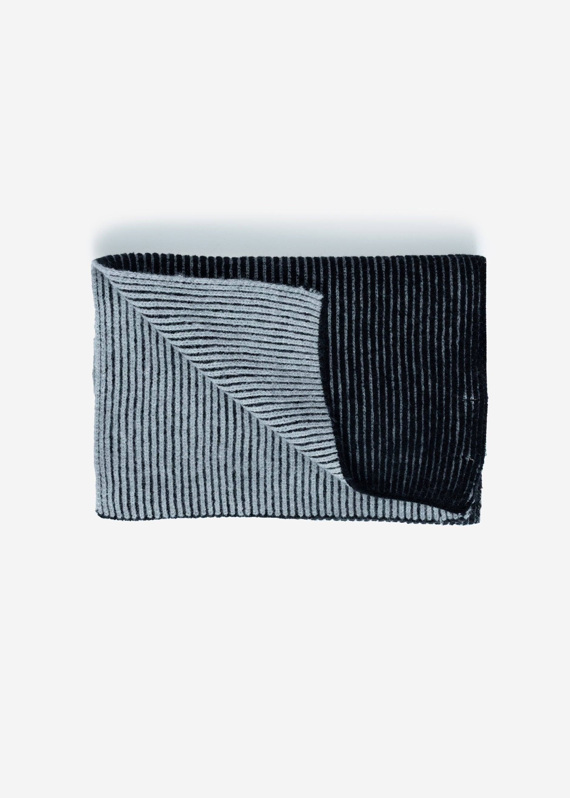 Zweifarbiger gerippter Schal - schwarz-hellgrau